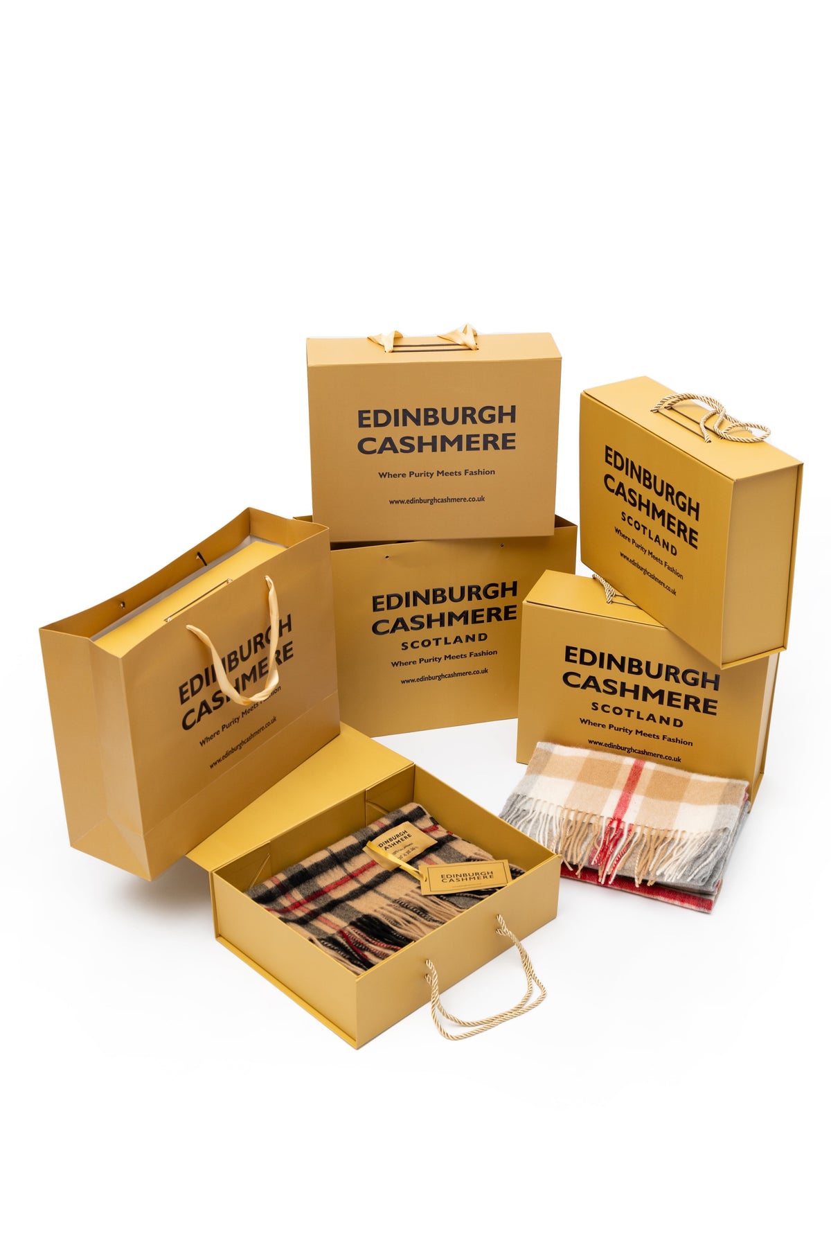 Signature Edinburgh Cashmere gift box and bag worth £20 with all orders over £100 and free UK shipping.