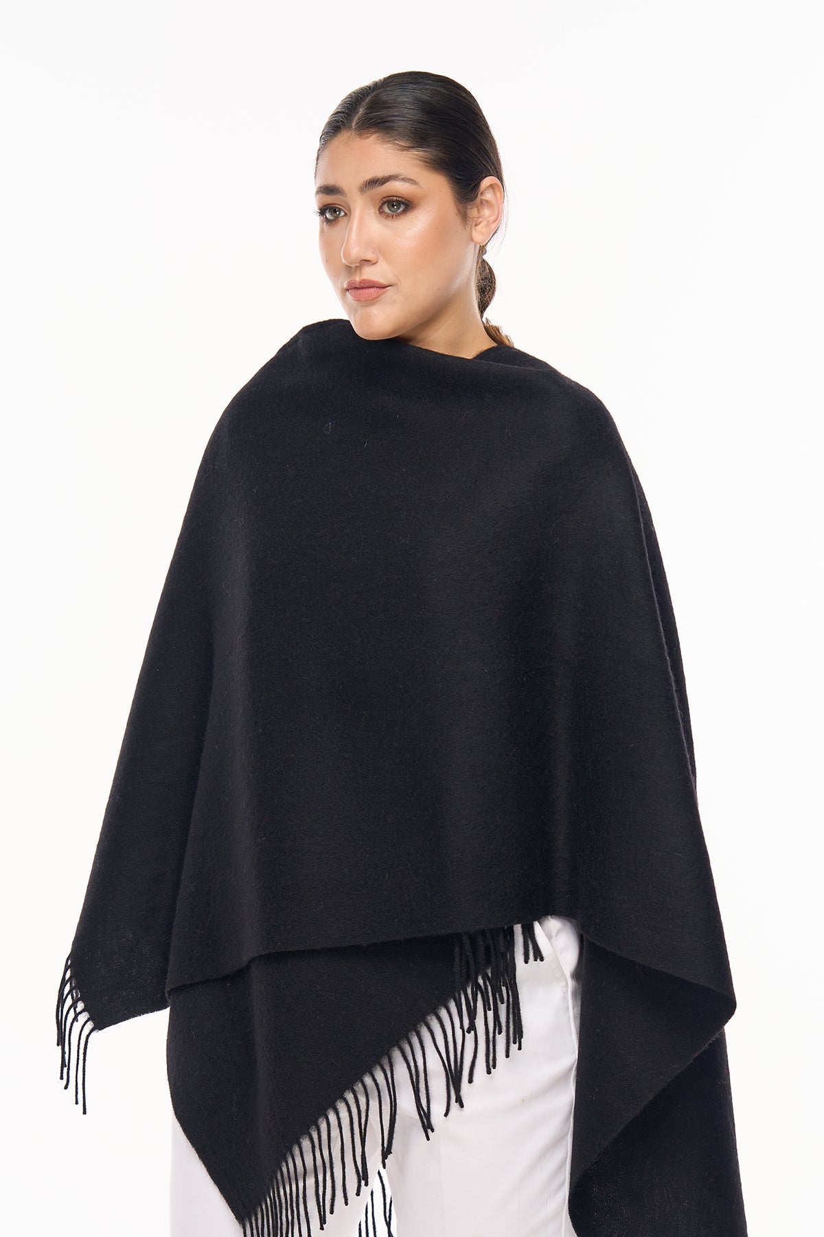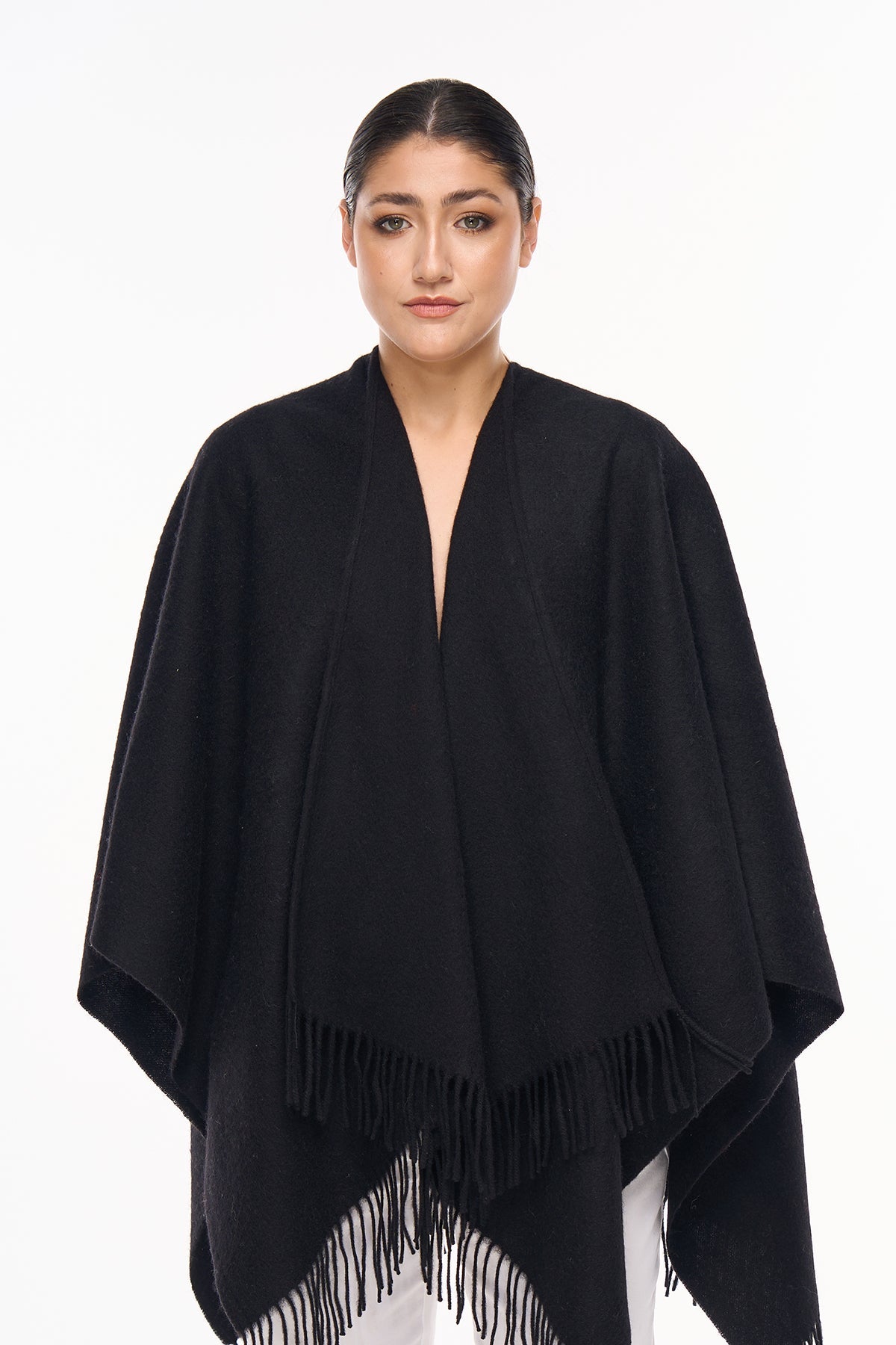 プレーン 100% ピュア ラムズウール ブラック ケープ
