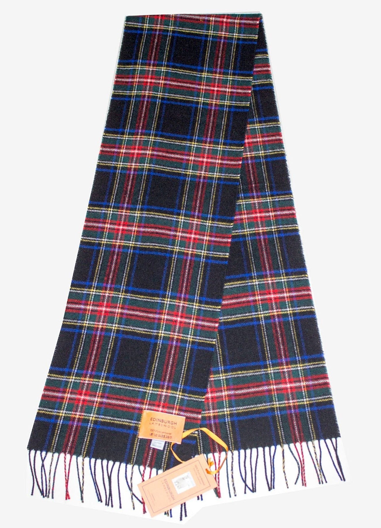 ブラック スチュワート スカーフ - スコットランド製 100% ピュア ラムズウール