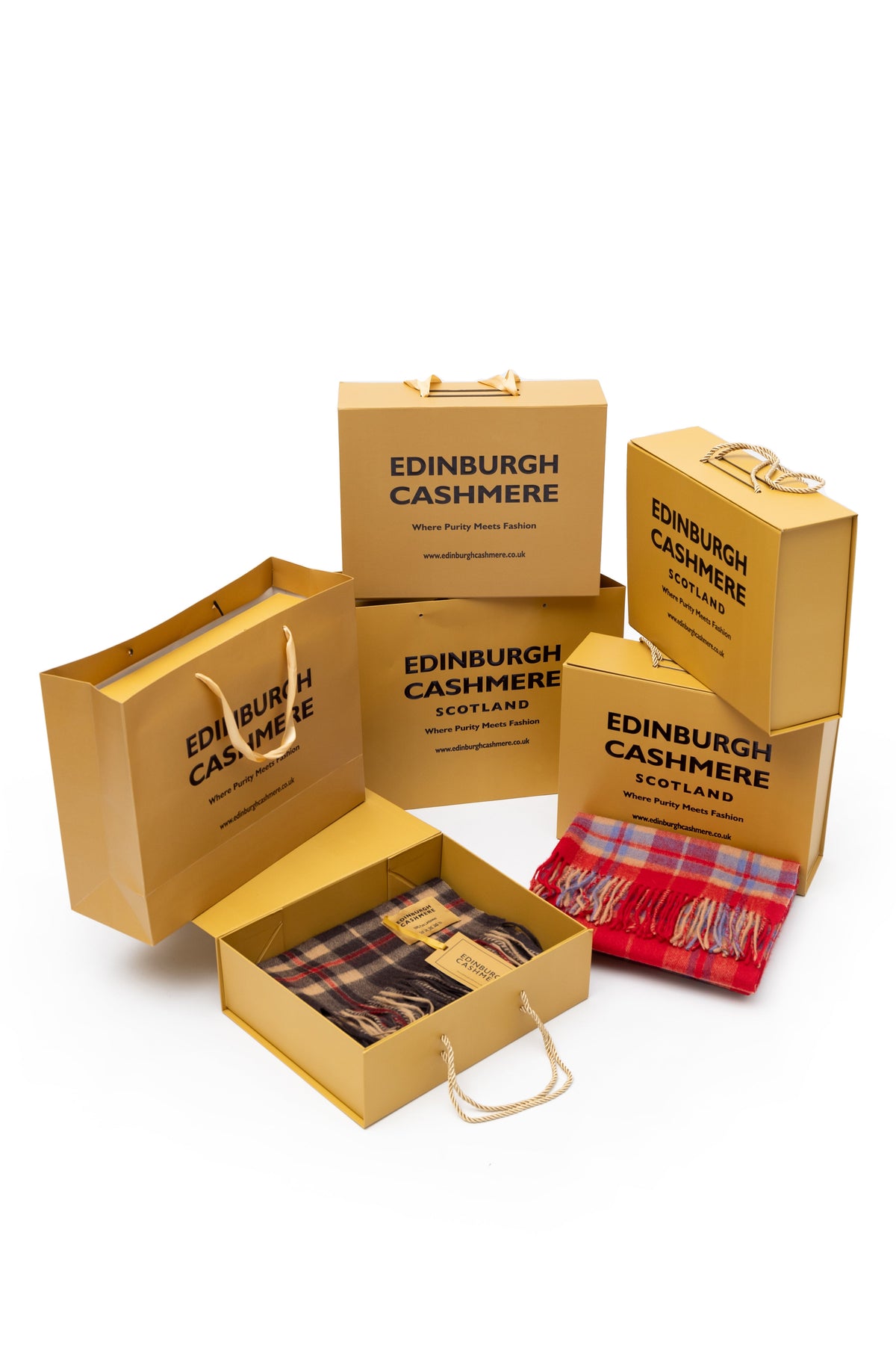 Signature Edinburgh Cashmere gift box and bag worth £20 with all orders over £100 and free UK shipping.