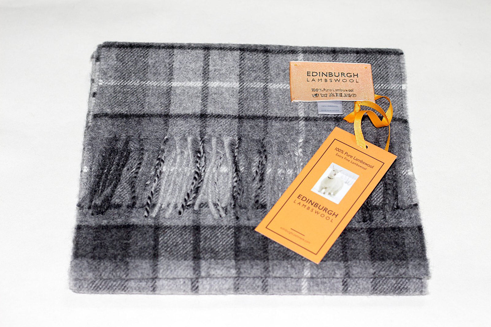 ブキャナン グレー スカーフ - スコットランド製 100% ピュア ラムズウール
