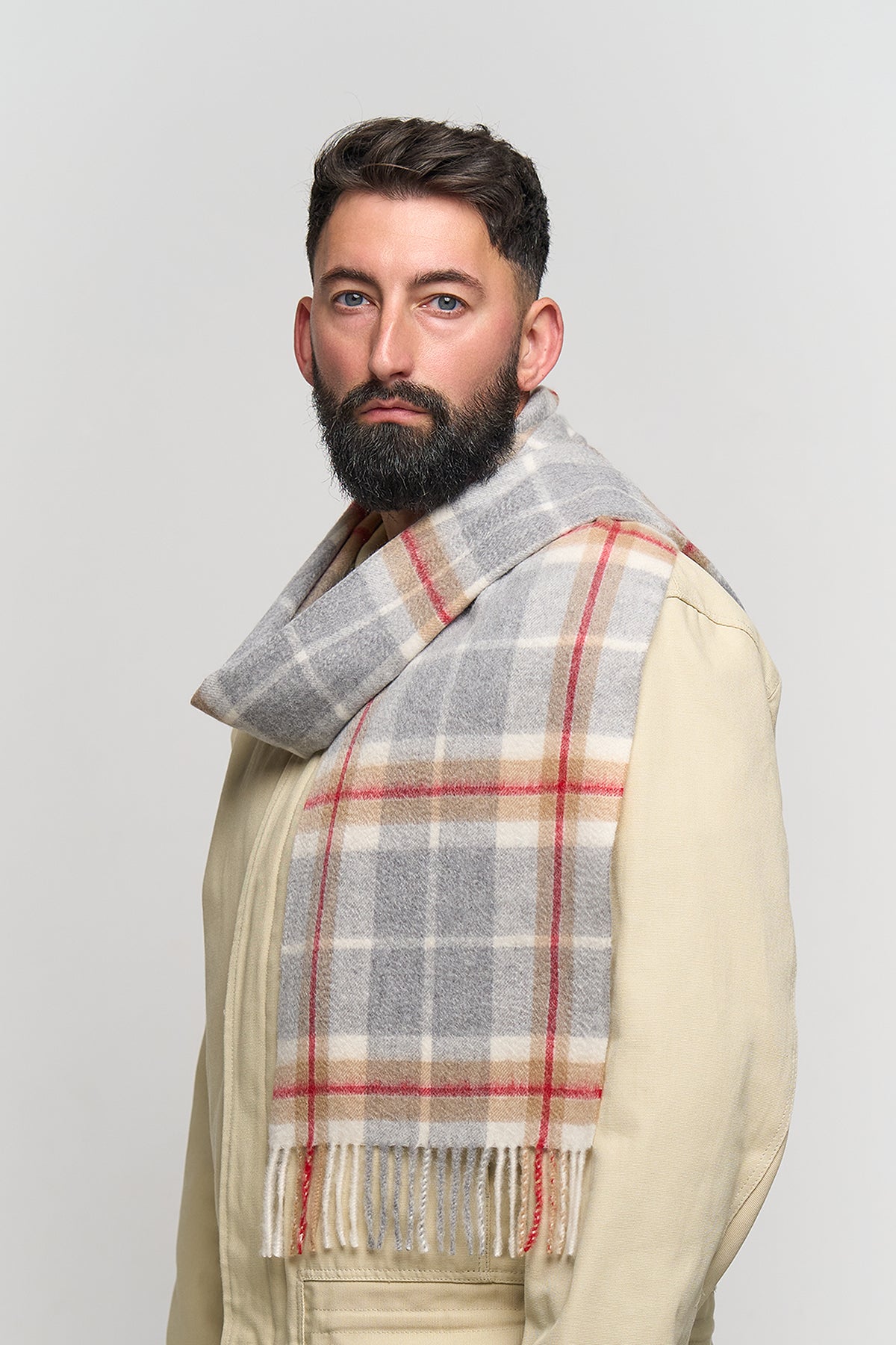 Scottish tartan scarves are iconic and recognized worldwide. Some of the most famous tartans scarves include Thomson Camel Light not only showcase Scottish heritage but also serve as fashionable and symbolic accessories. Many Scottish clans have their own tartans, and the choice of tartan often reflects a person's Scottish ancestry or personal preferences. You can find scarves in these tartans in various materials, 100% pure Extra fine cashmere, making them popular choices for both warmth and style worldwide.