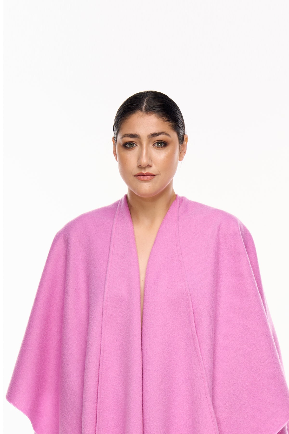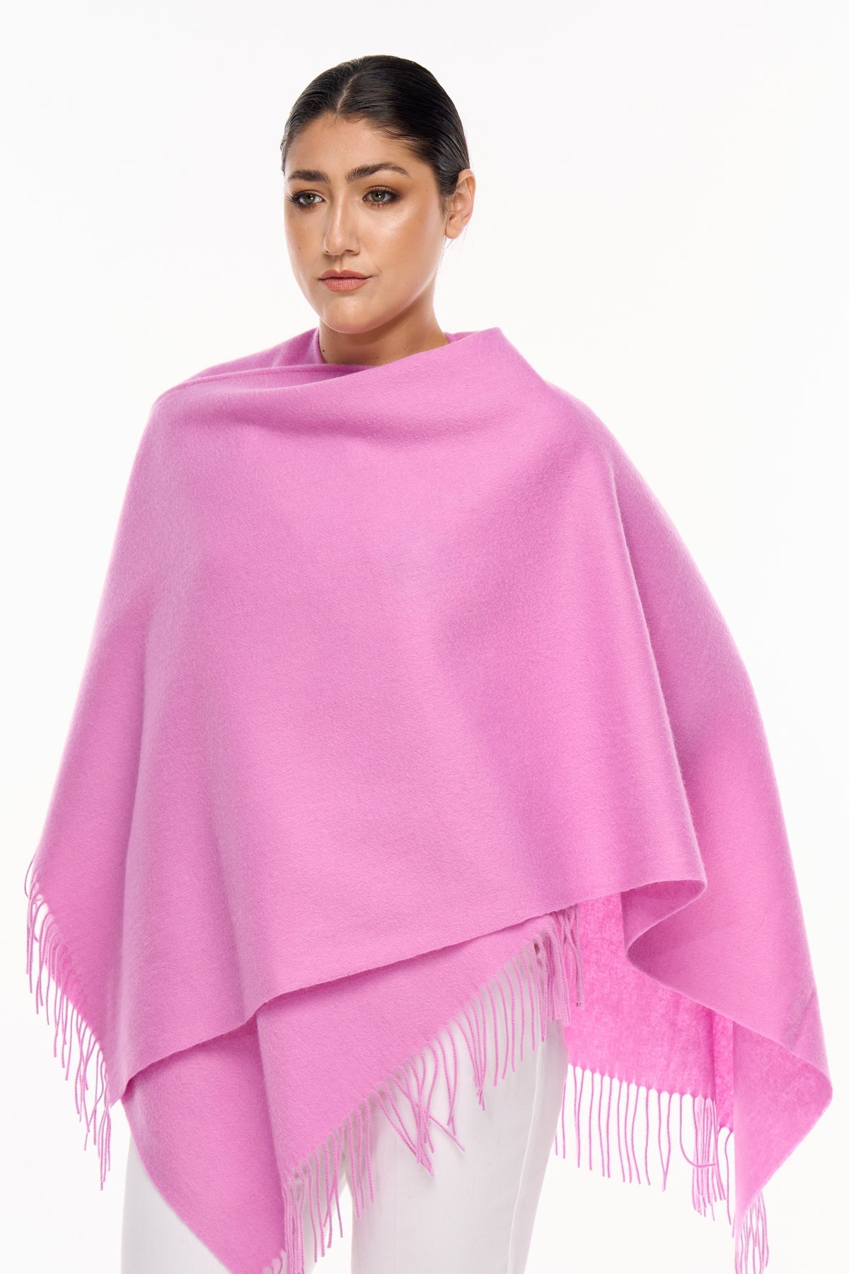 プレーン 100% ピュア ラムウール ダークピンク ケープ