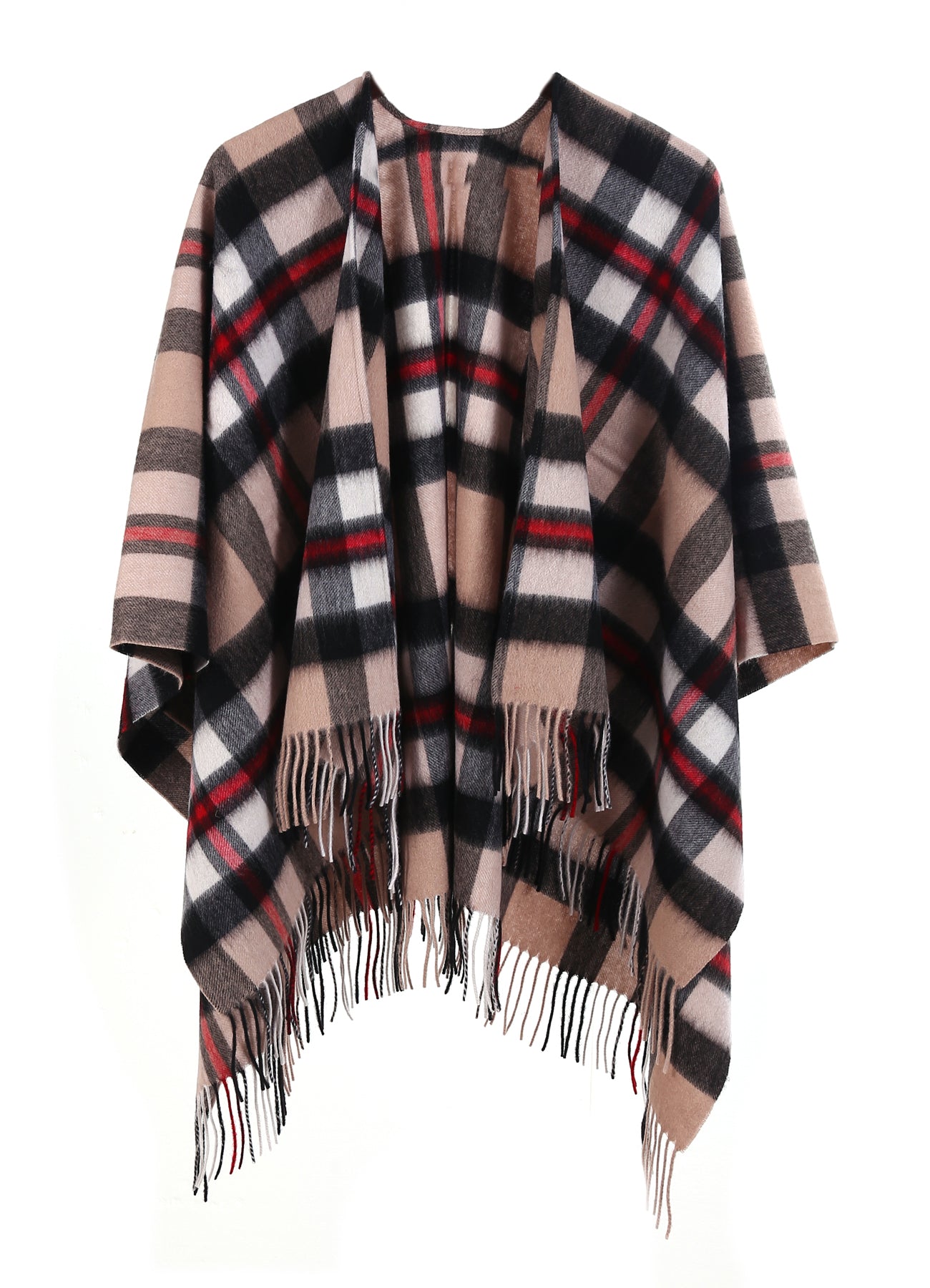 エレガントなデザイン:この特別にデザインされたケープは、あらゆる機会にスタイリッシュでエレガントな選択肢になります。裾のフリンジが特徴で、シンプルながらもシックなデザインにアクセントを加えています。
