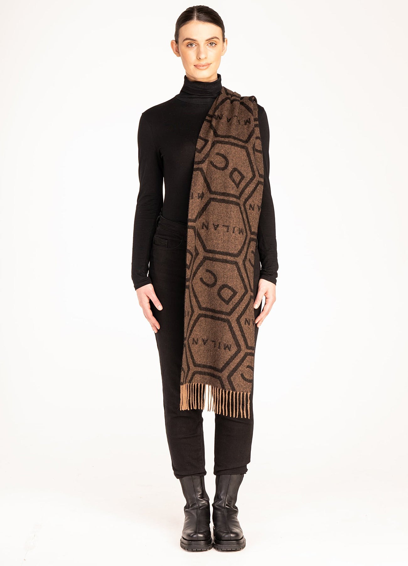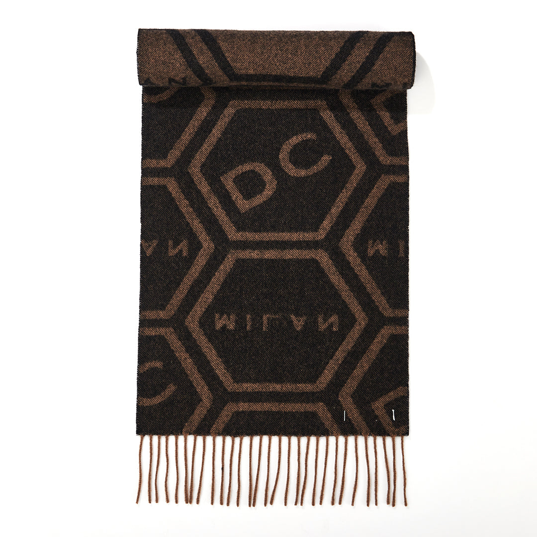 DC モノグラム ブラウン スカーフ 100% ピュア ラムズウール