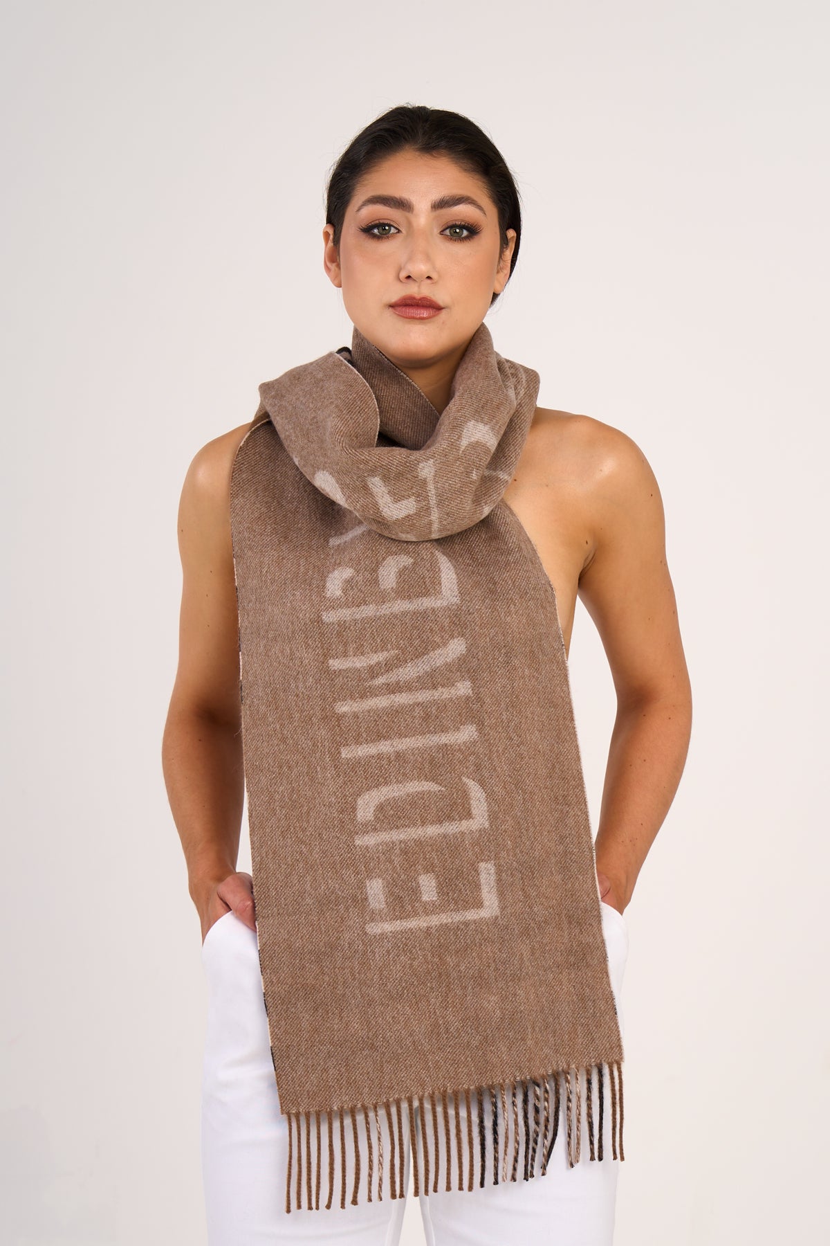 エレガントなデザイン:この特別にデザインされたスカーフは、あらゆる機会にスタイリッシュでエレガントな選択肢になります。裾のフリンジが特徴で、シンプルながらもシックなデザインにアクセントを加えています。