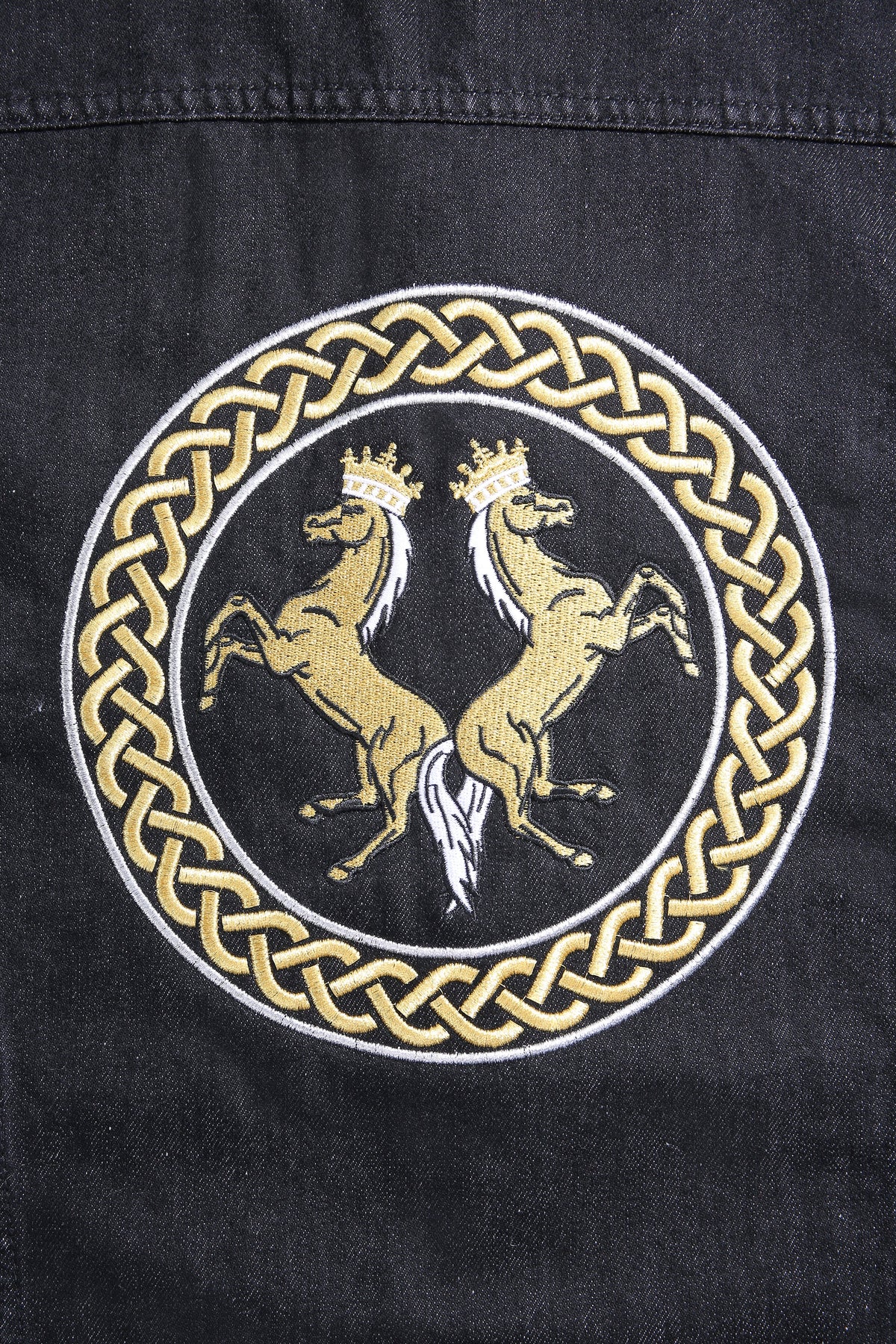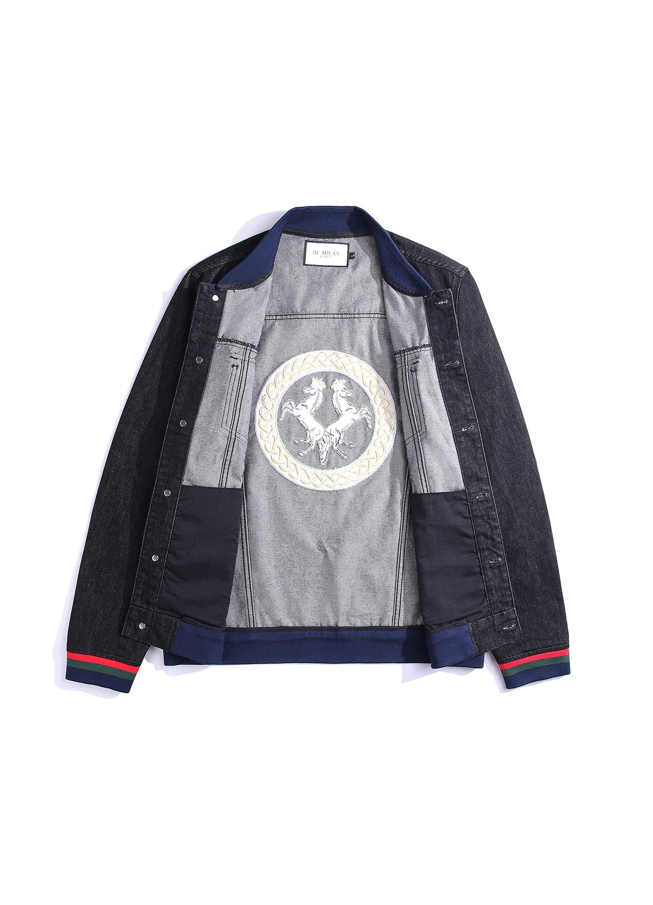 ストライプ刺繍入りブラックデニムジャケット