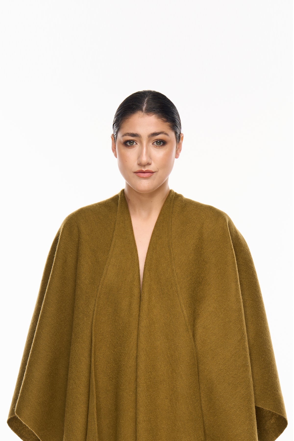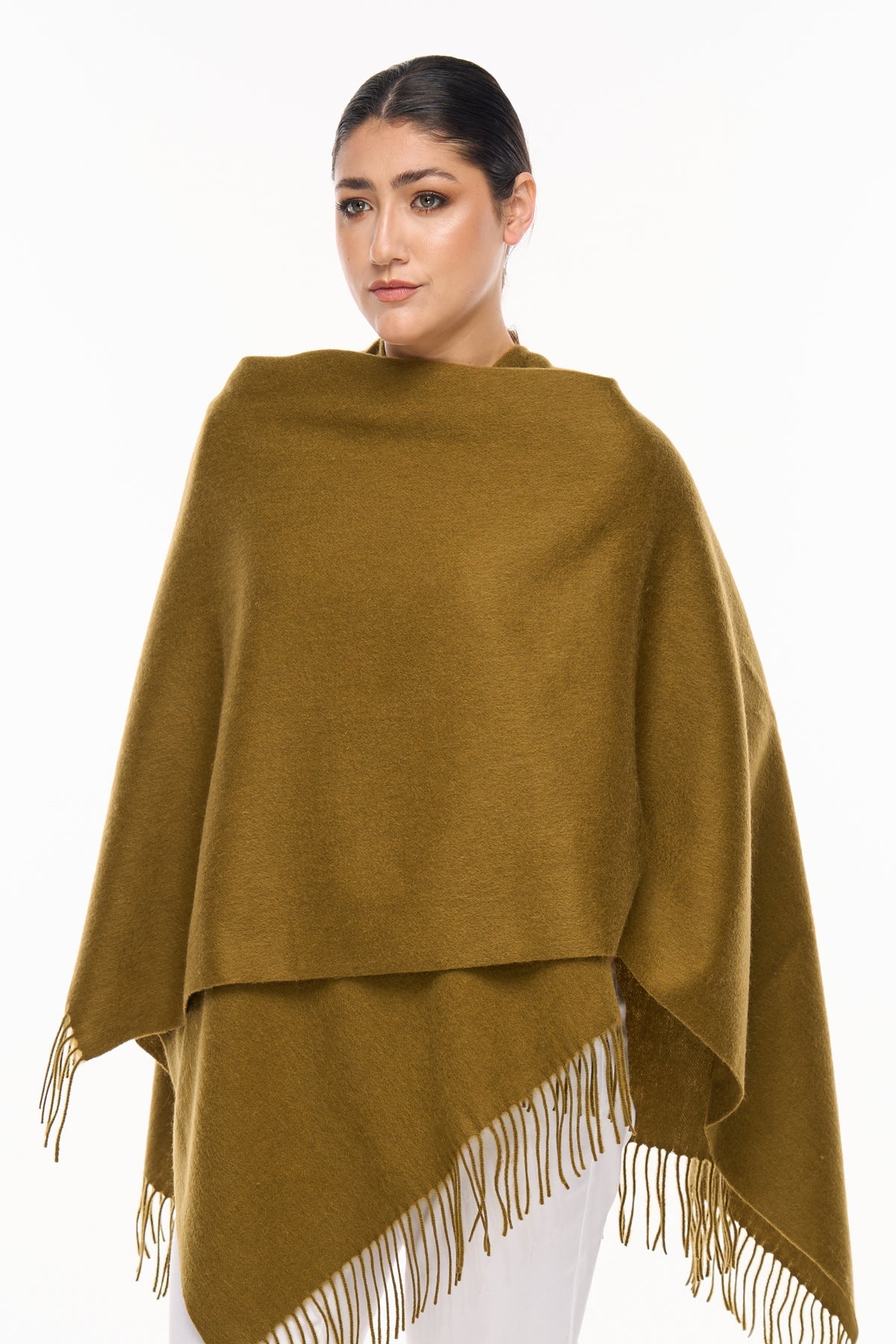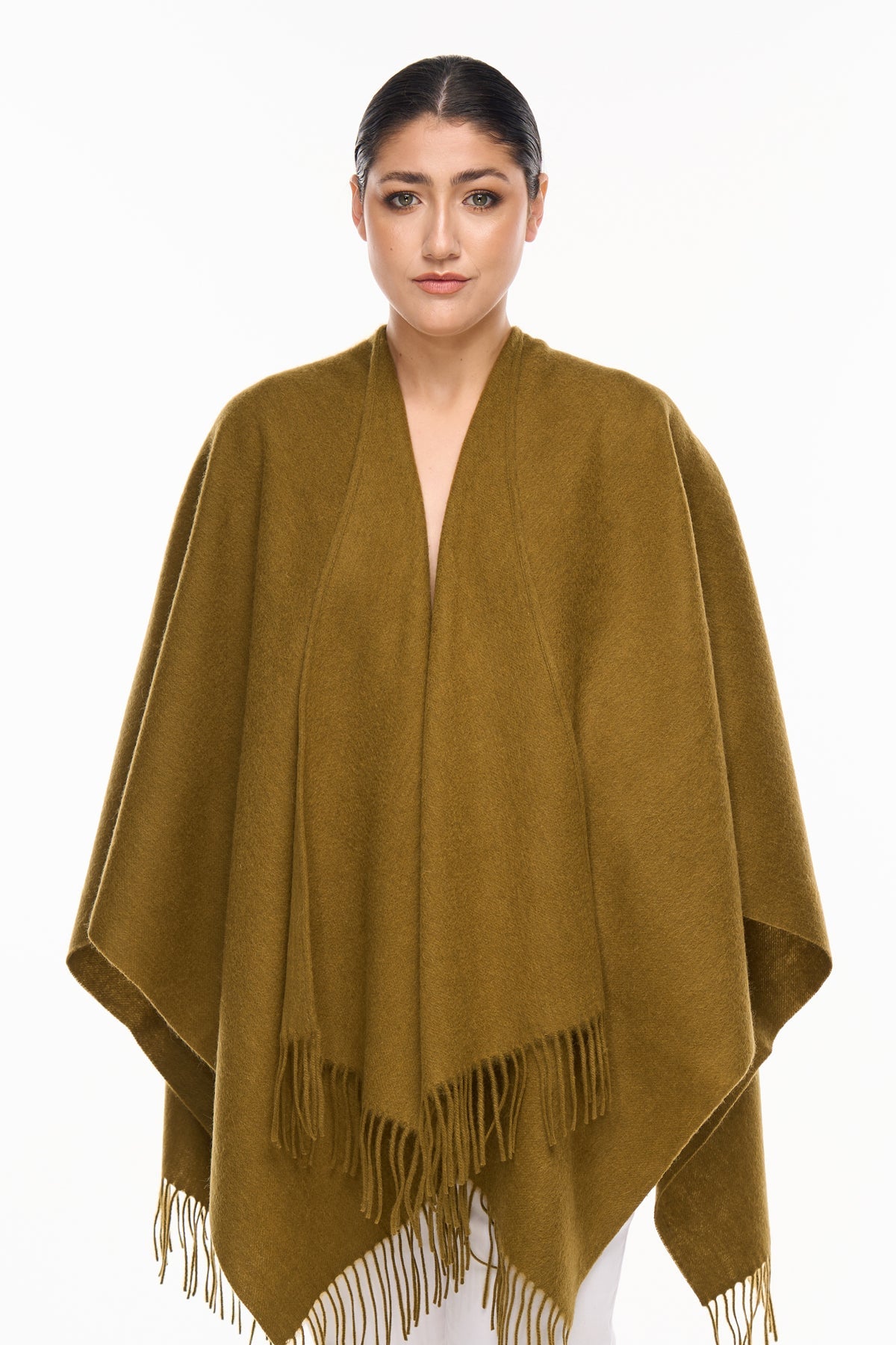 プレーン 100% ピュア ラムズウール グリーン ケープ