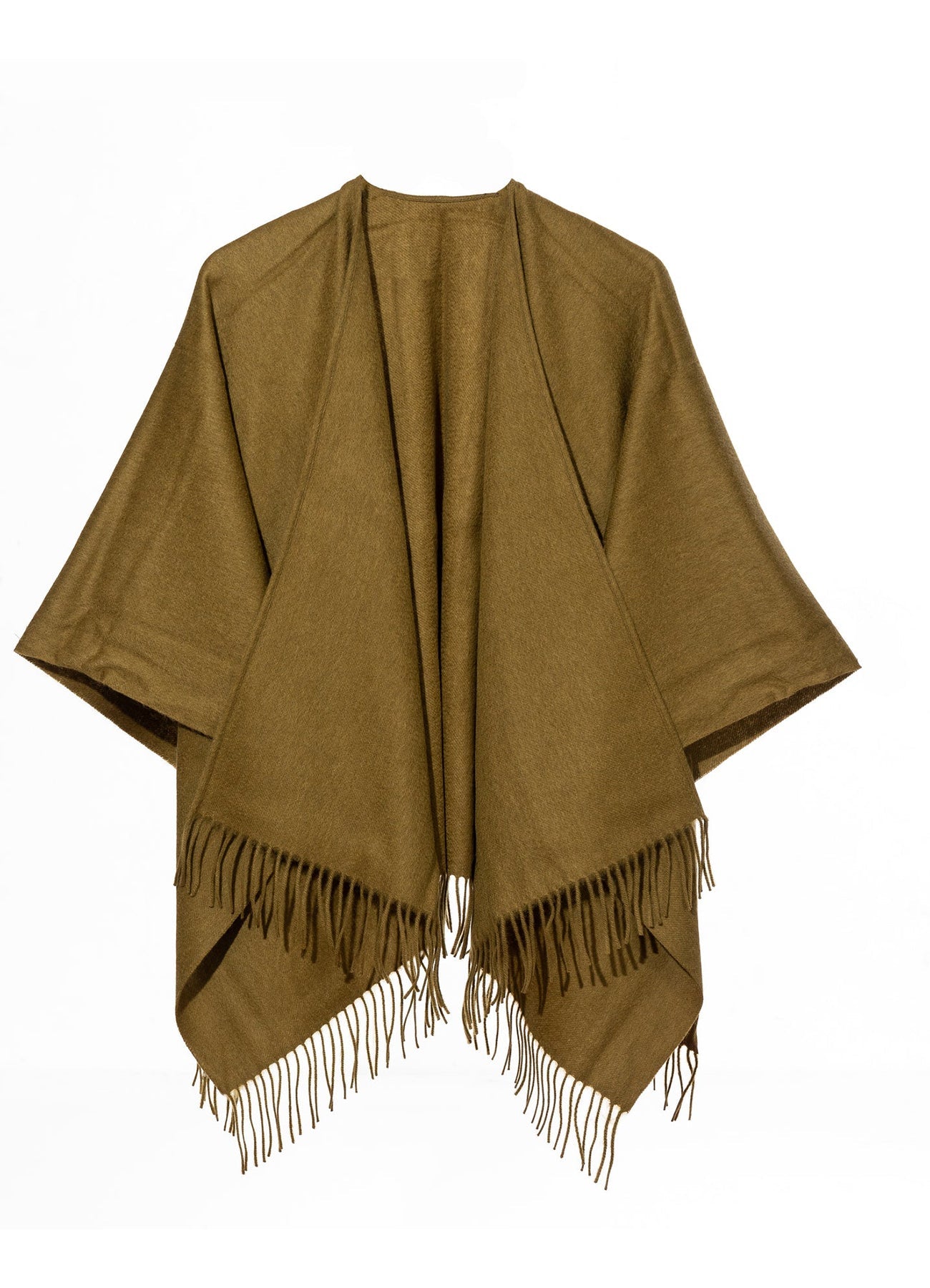 エレガントなデザイン:この特別にデザインされたケープは、あらゆる機会にスタイリッシュでエレガントな選択肢になります。裾のフリンジが特徴で、シンプルながらもシックなデザインにアクセントを加えています。