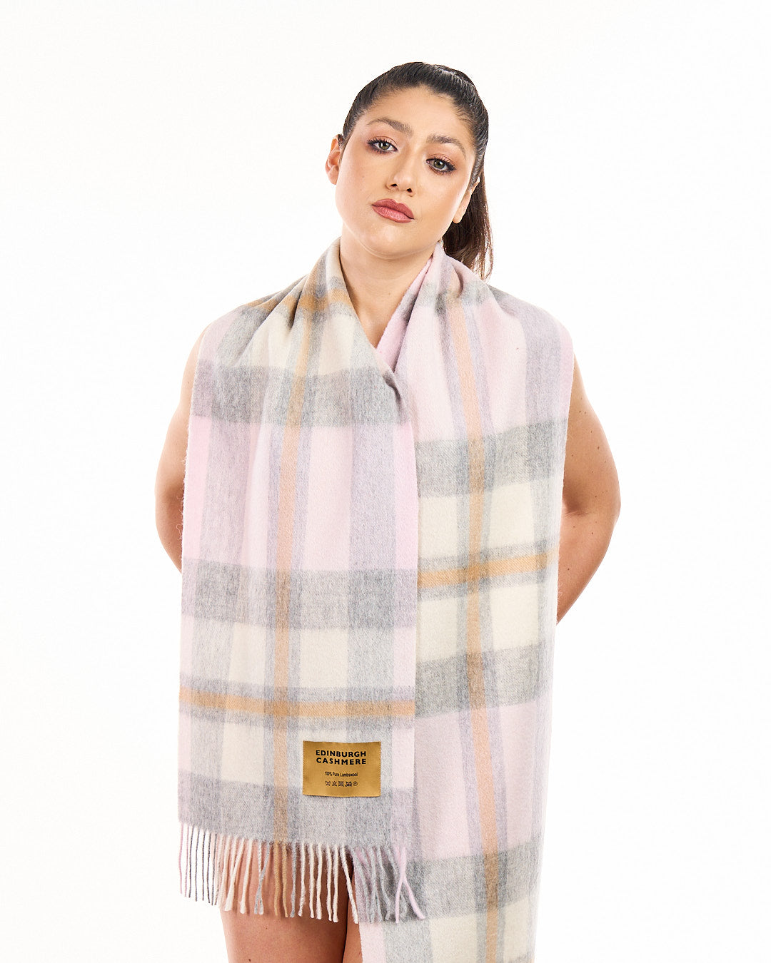 大切なお客様のために、各スカーフをより豪華で快適で居心地の良いものにするために、公式エディンバラ・カシミアのみが 140 グラムの素材を使用しています。