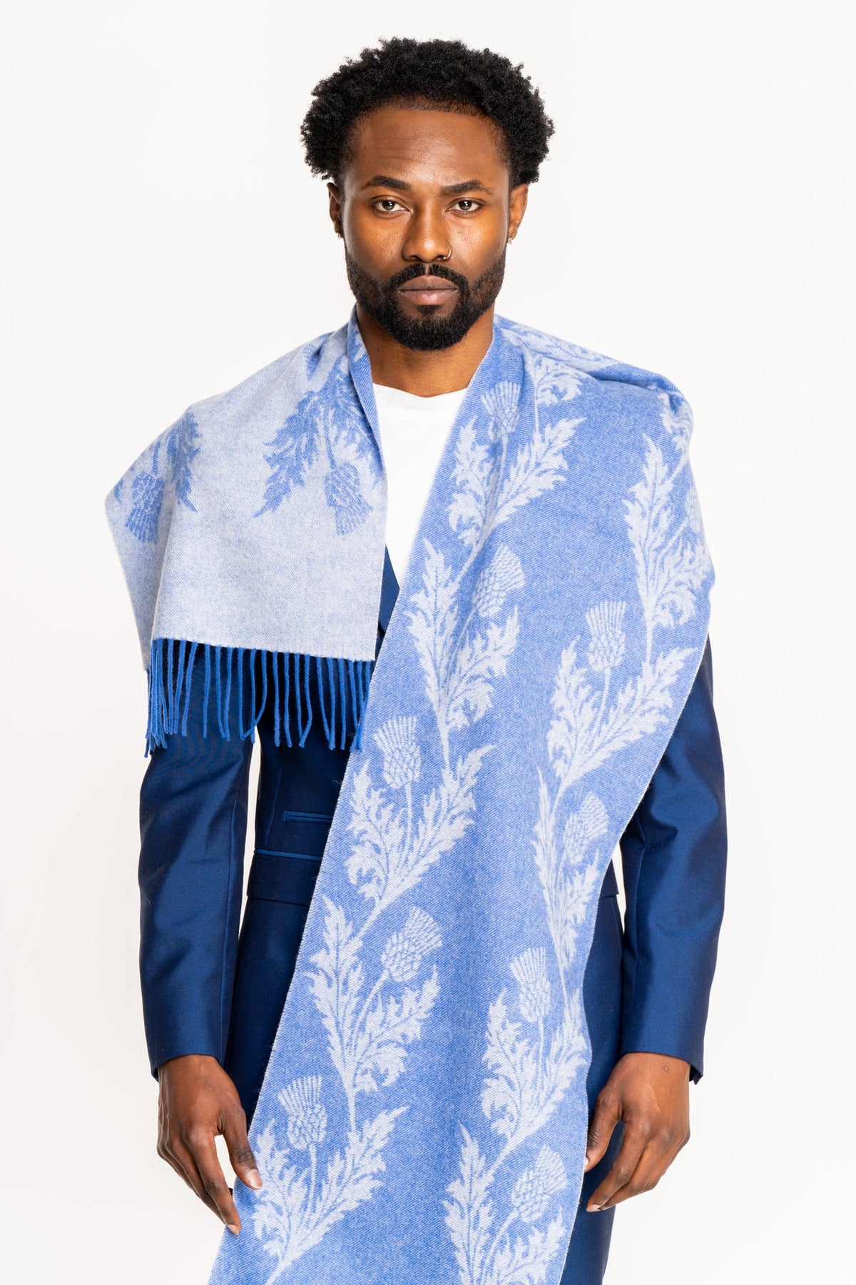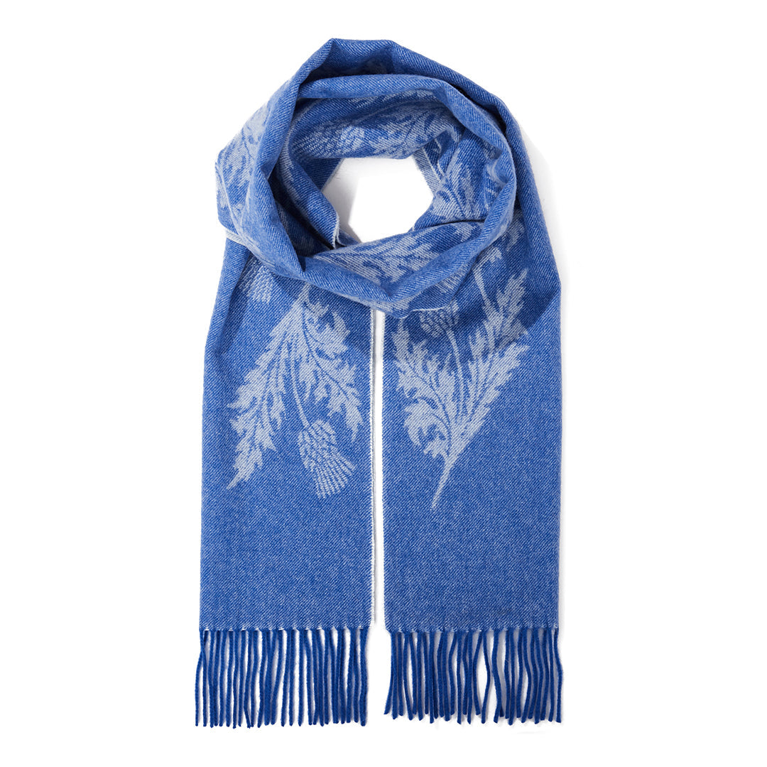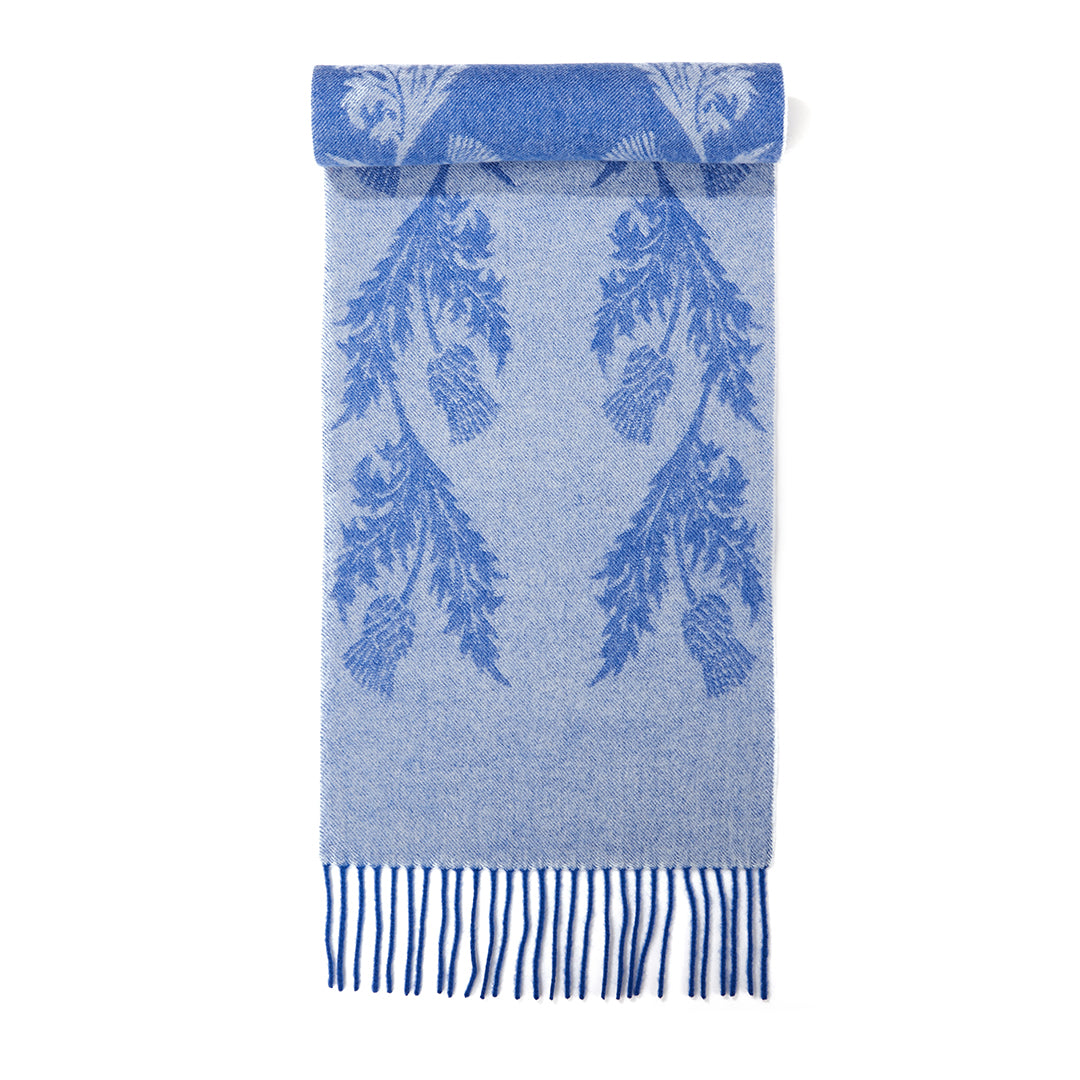 ダブル アザミ ブルー スカーフ 100% ピュア ラムズウール