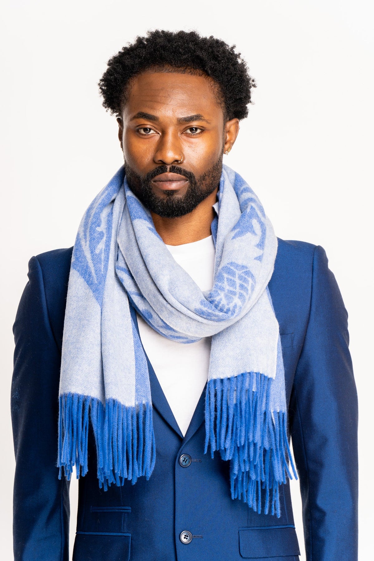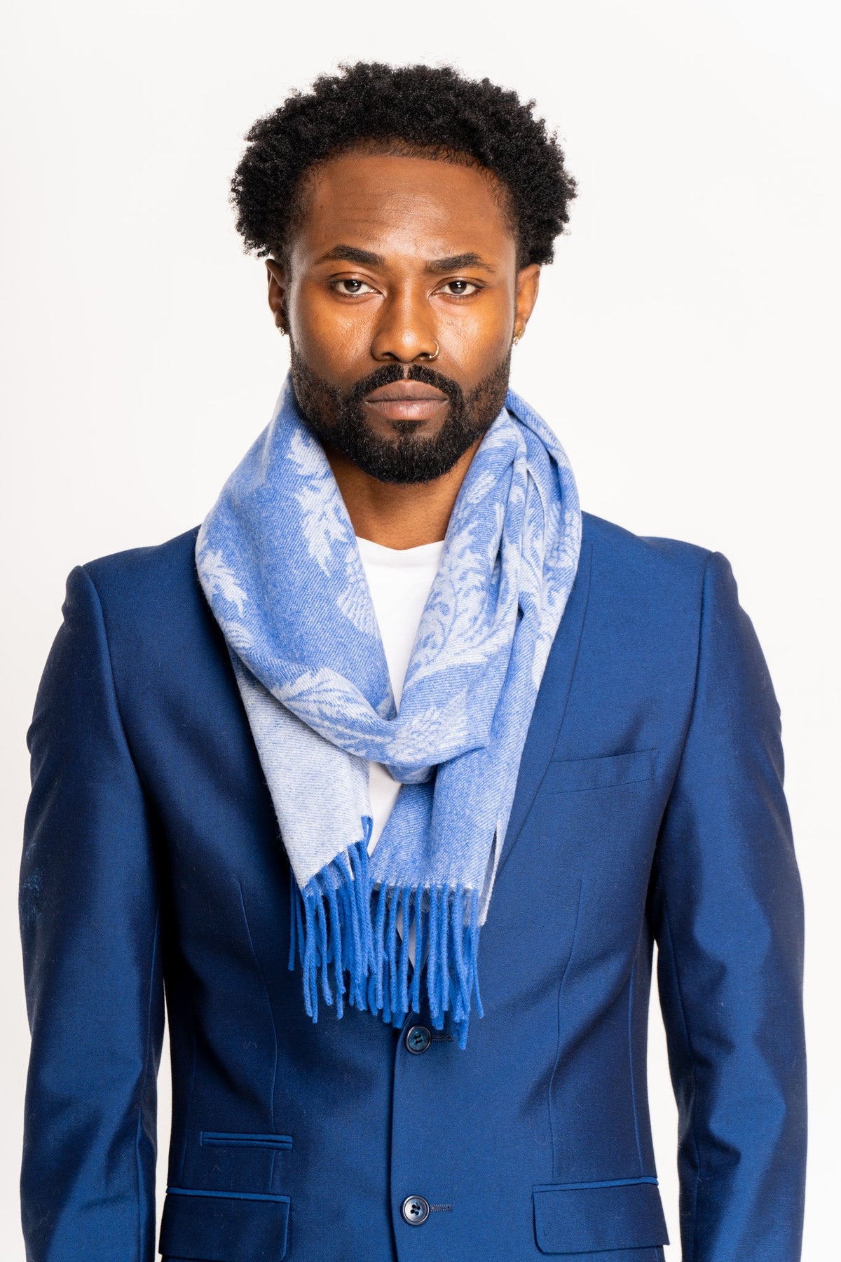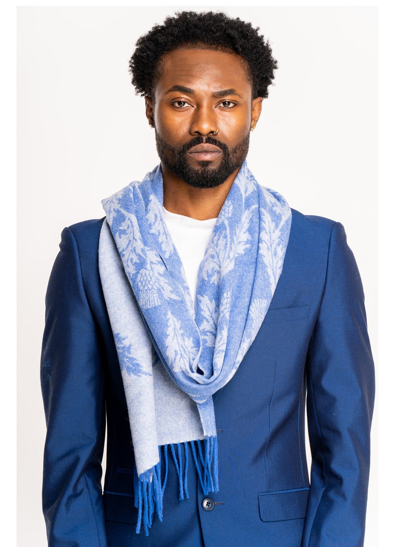 ダブル アザミ ブルー スカーフ 100% ピュア ラムズウール
