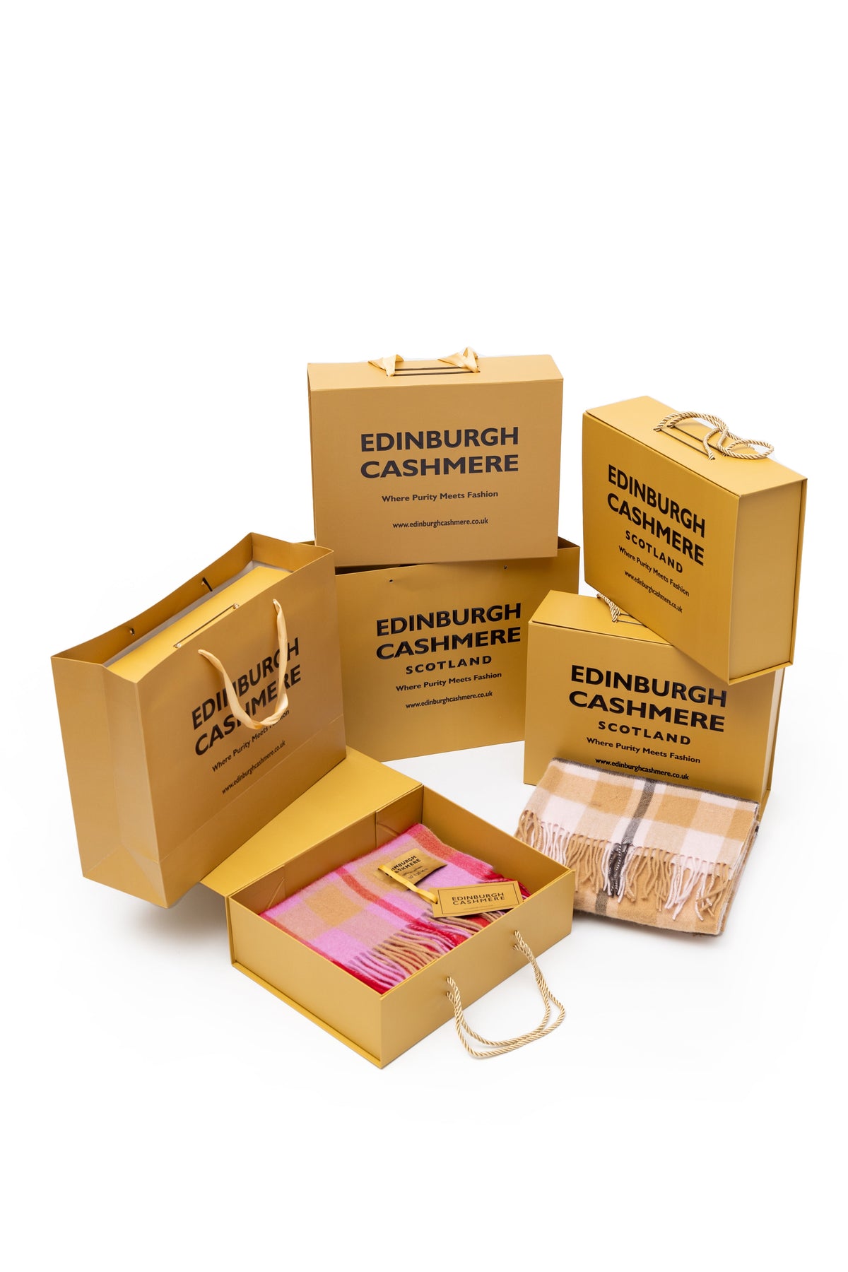 Signature Edinburgh Cashmere gift box and bag worth £20 with all orders over £100 and free UK shipping.