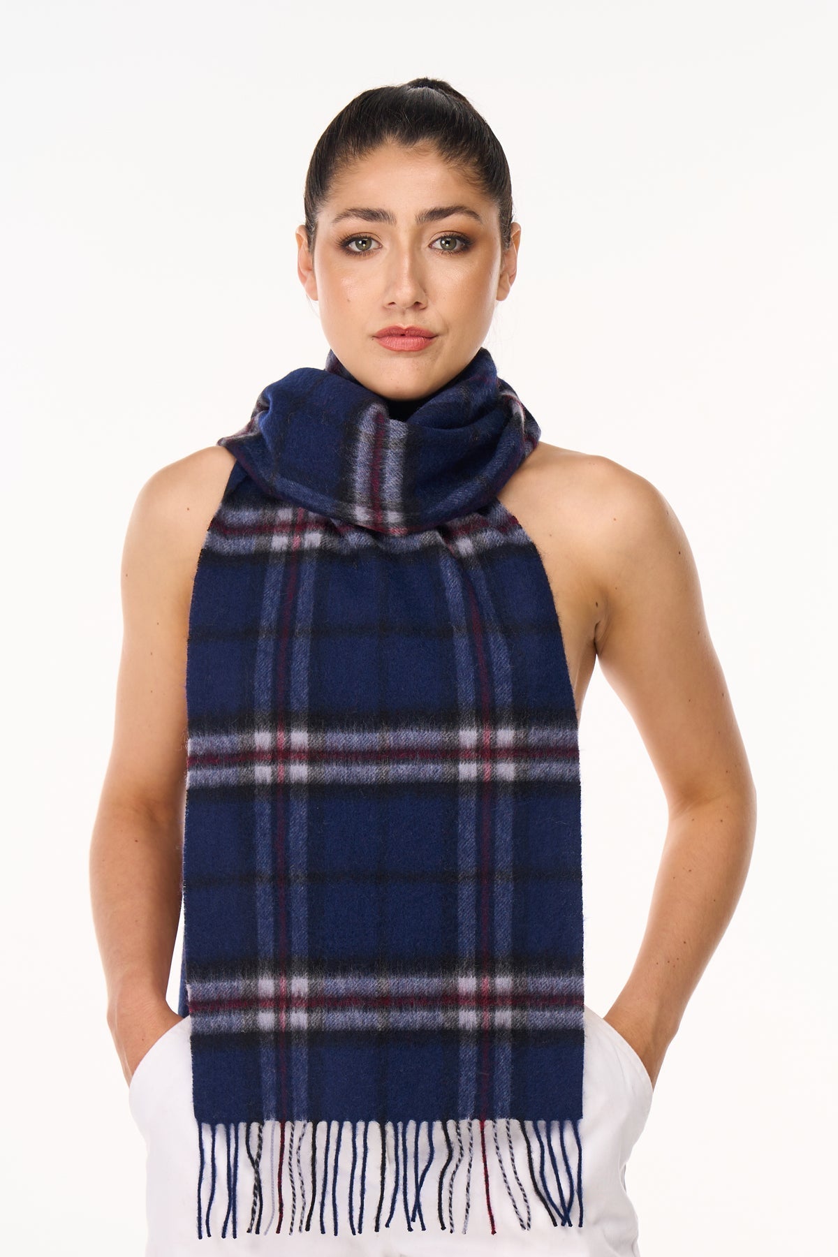 Scottish tartan scarves are iconic and recognized worldwide. Some of the most famous tartans scarves include Thomson Navy not only showcase Scottish heritage but also serve as fashionable and symbolic accessories. Many Scottish clans have their own tartans, and the choice of tartan often reflects a person's Scottish ancestry or personal preferences. You can find scarves in these tartans in various materials, 100% pure Extra fine cashmere, making them popular choices for both warmth and style worldwide.