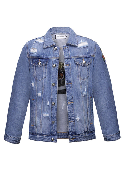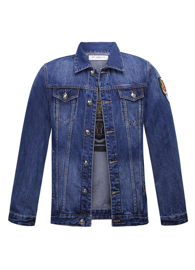 4개의 로고가 있는 미디엄 블루 슬림핏 진
