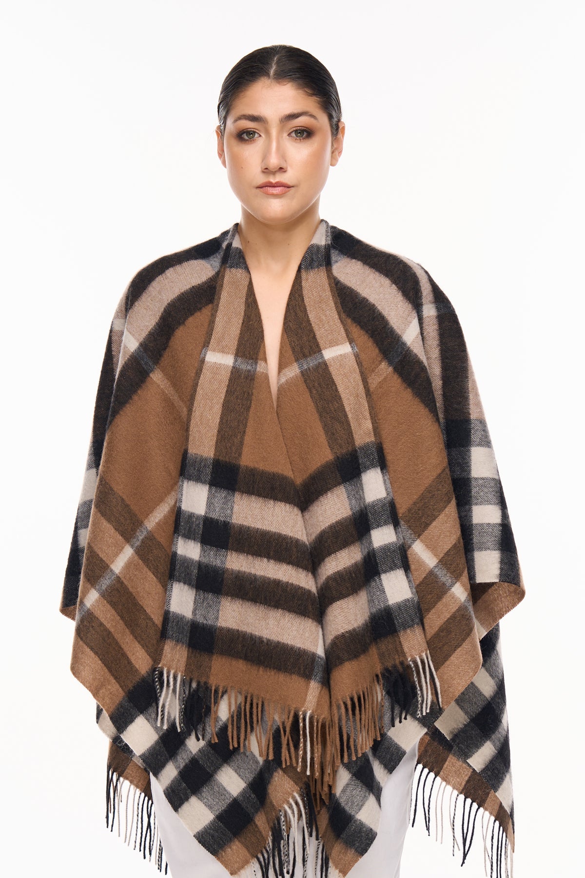 우아한 디자인: 독점적으로 디자인된 이 케이프는 모든 경우에 세련되고 우아한 선택입니다. 끝단에 프린지 장식이 있어 심플하면서도 시크한 디자인을 더해줍니다.