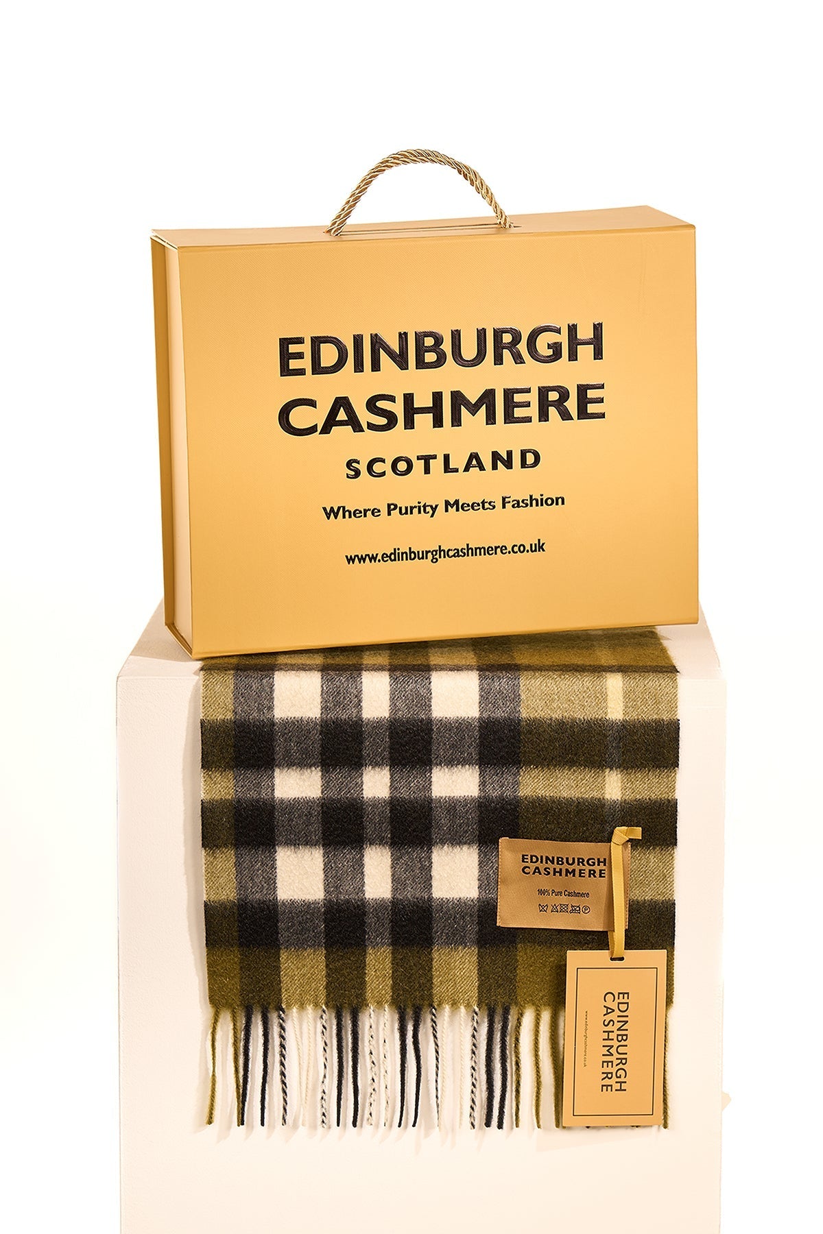 Signature Edinburgh Cashmere gift box and bag worth £20 with all orders over £100 and free UK shipping.