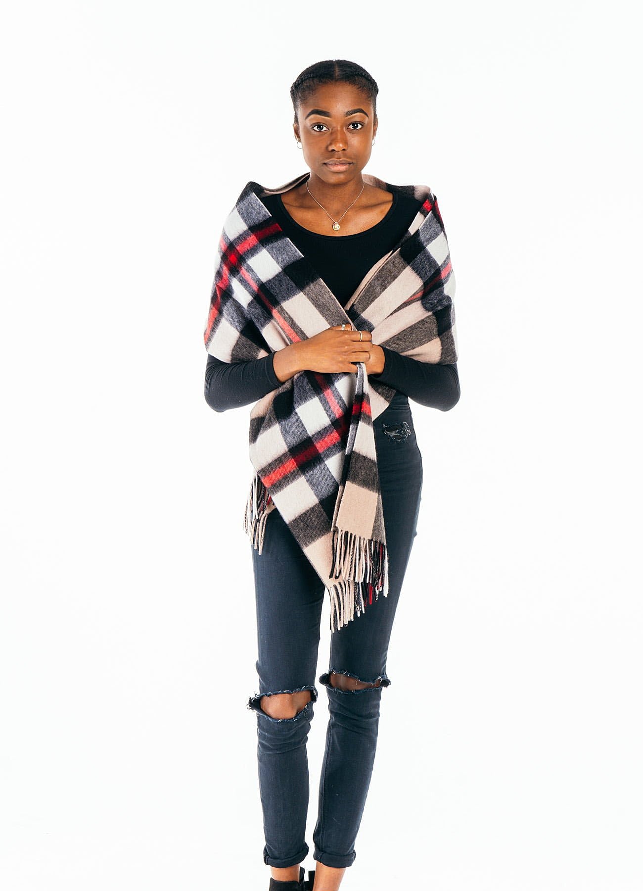 공식 에든버러 캐시미어만이 140g의 소재를 사용하여 소중한 고객을 위해 각 스카프를 더욱 고급스럽고 편안하며 아늑하게 만듭니다.