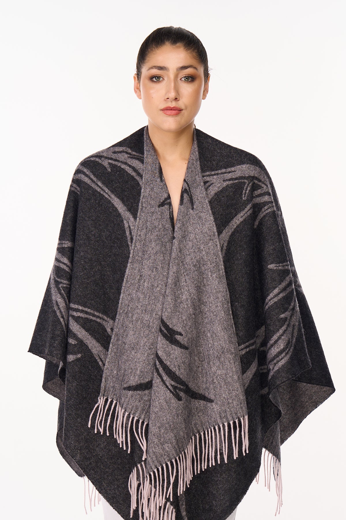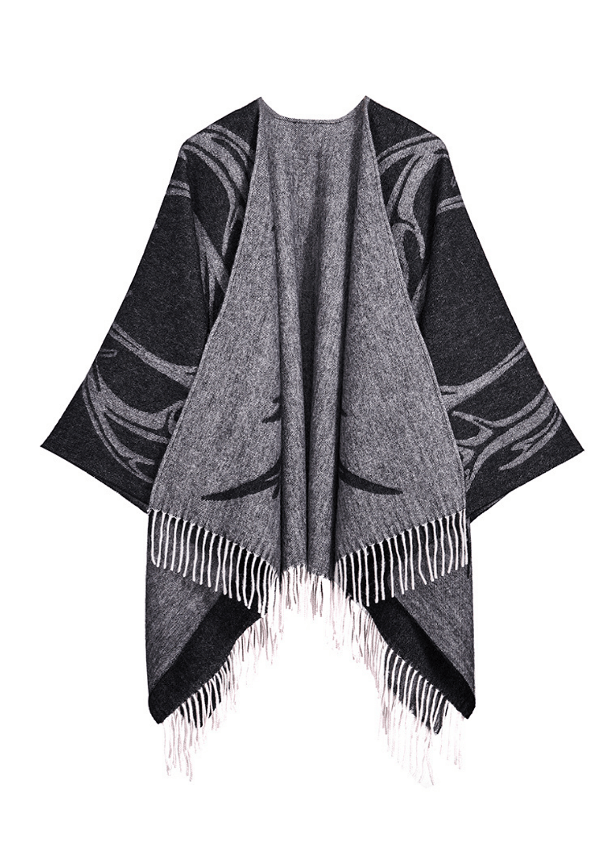 우아한 디자인: 독점적으로 디자인된 이 케이프는 모든 경우에 세련되고 우아한 선택입니다. 끝단에 프린지 장식이 있어 심플하면서도 시크한 디자인을 더해줍니다.