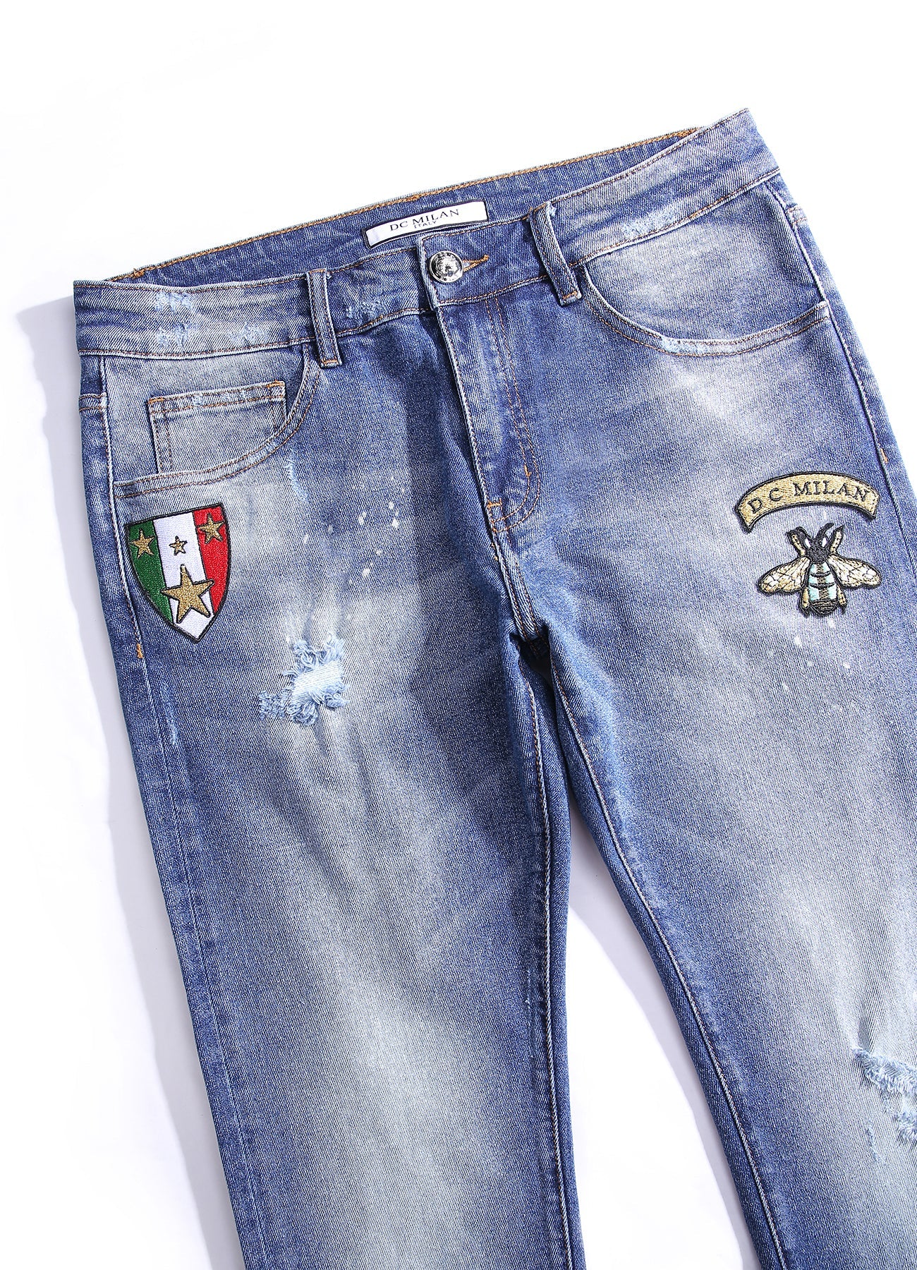 DC Milan은 모든 청바지를 수작업으로 마무리하여 소중한 고객에게 모든 아이템이 고급스럽고 편안하도록 보장합니다.