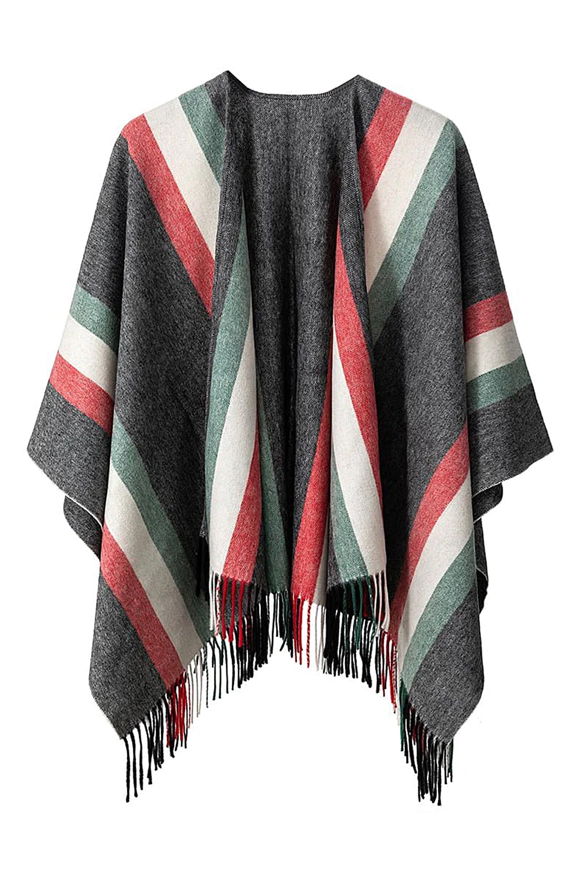 우아한 디자인: 독점적으로 디자인된 이 케이프는 모든 경우에 세련되고 우아한 선택입니다. 끝단에 프린지 장식이 있어 심플하면서도 시크한 디자인을 더해줍니다.