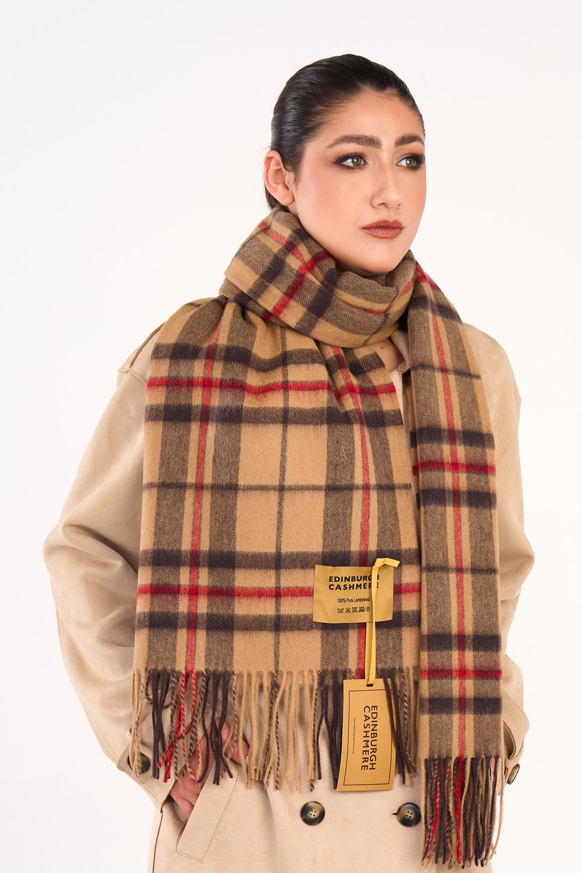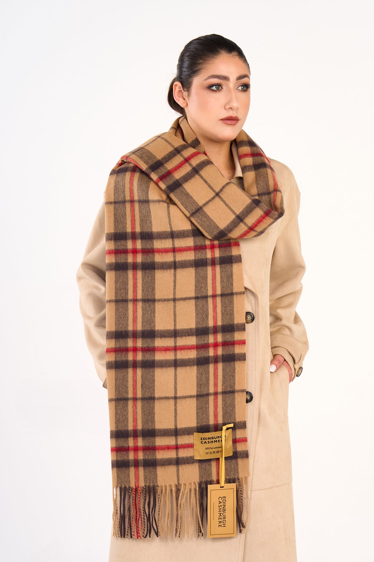 Scarf Luxury Exclusive Iconic Design EC Check Oversized. Scott Cashmere is a Scottish heritage brand, a luxurious fashion label that epitomises elegance and sophistication. Our oversized scarfs/wraps are crafted using 100% pure extra fine lambswool fibres from sustainable sources, in mills that have been manufacturing for over 250 years producing timeless pieces that offer both comfort and style. Each oversized scarf/wrap is meticulously designed to exude unparalleled quality and craftsmanship. Embrace the allure of our luxury oversized scarf/wrap with unique designs and quality that stands the test of time. Elevate your wardrobe with our exquisite oversized scarf/wrap and indulge in the ultimate luxury of Scott Cashmere.