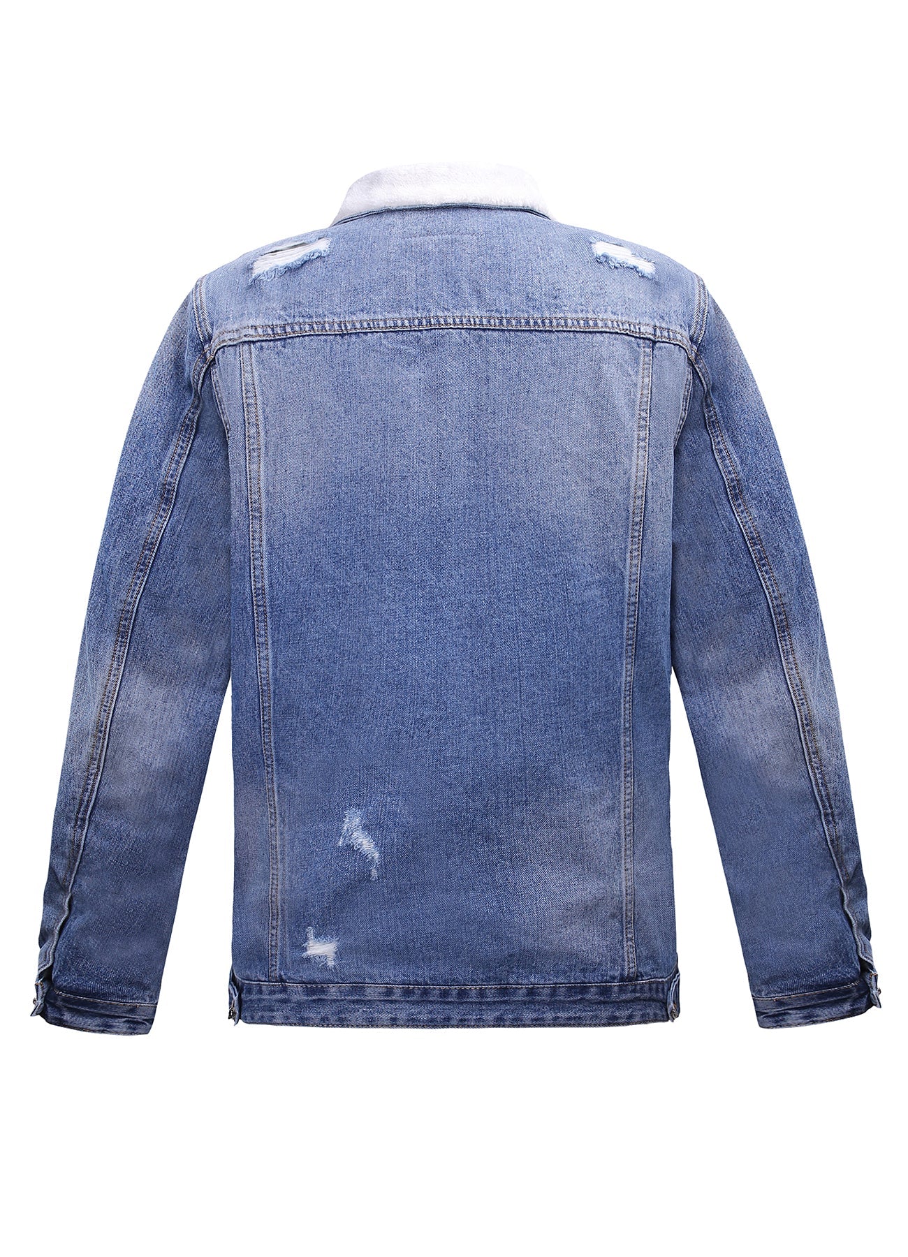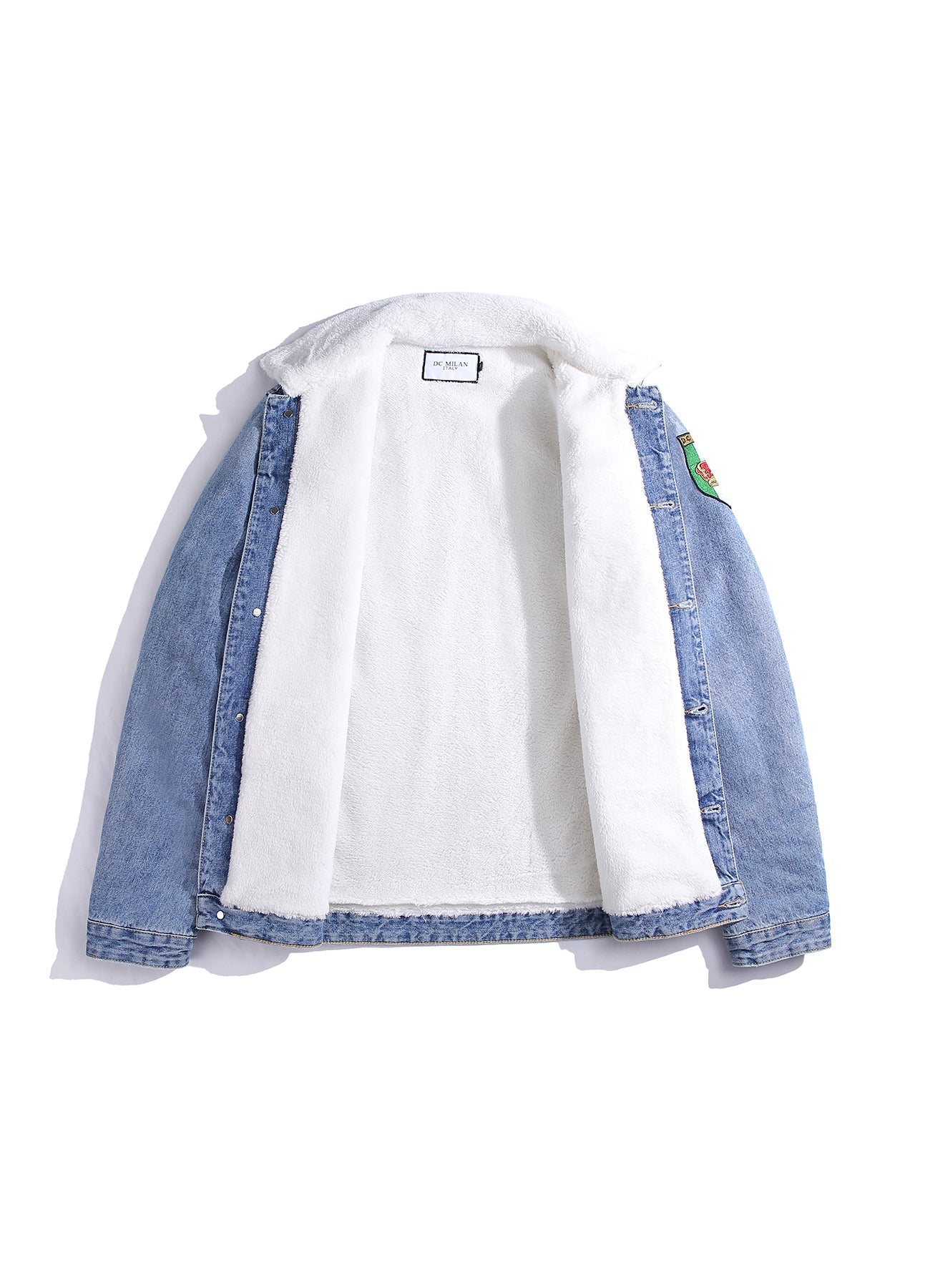 Embroidered Light Blue Denim Jacket With Faux Fur