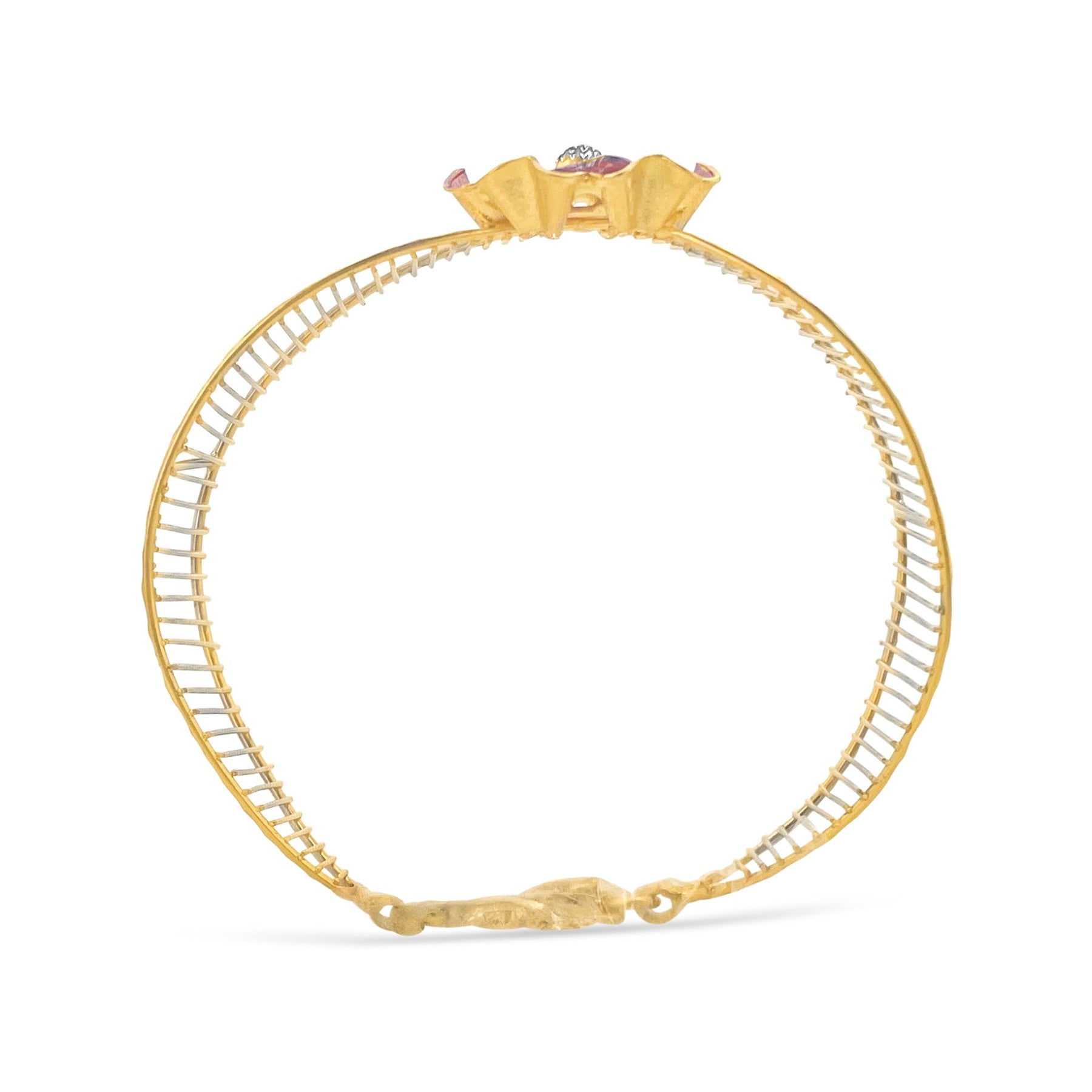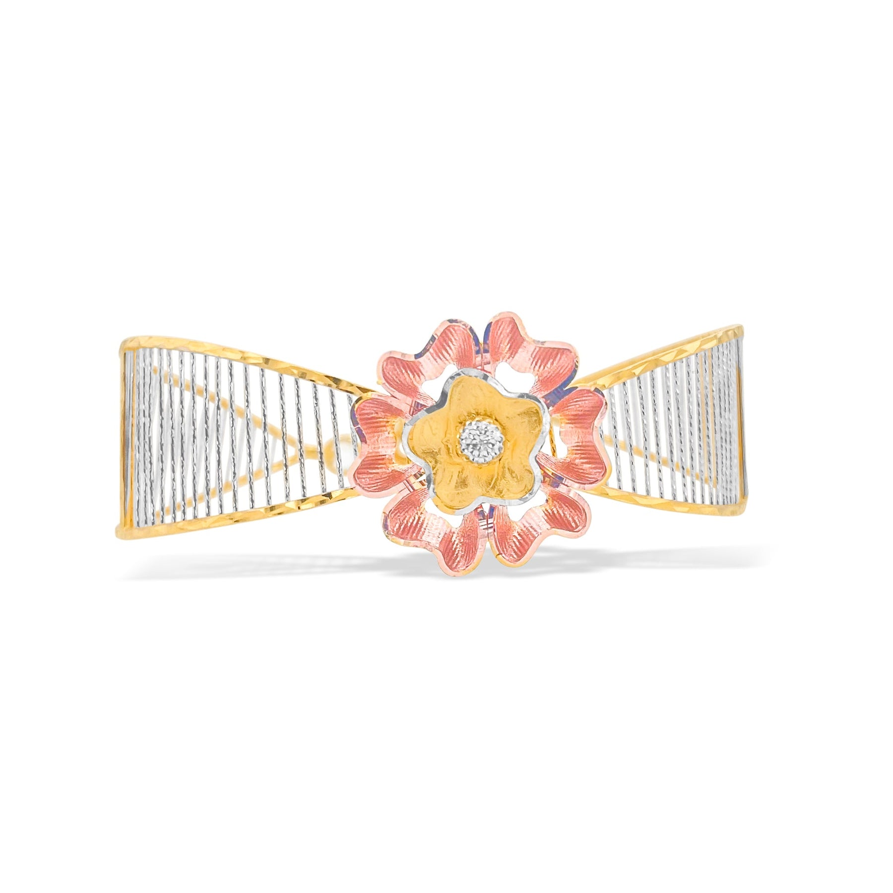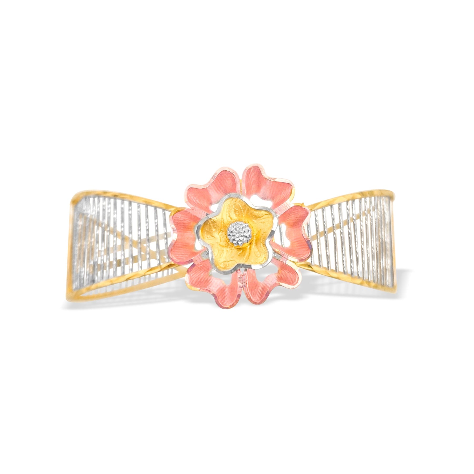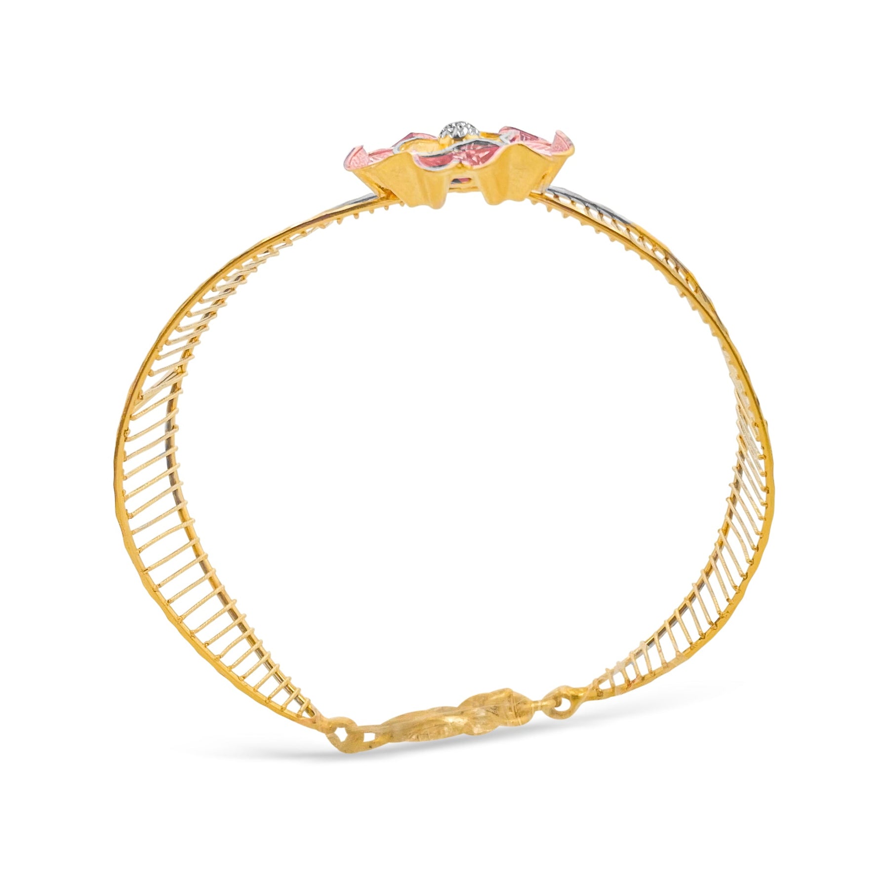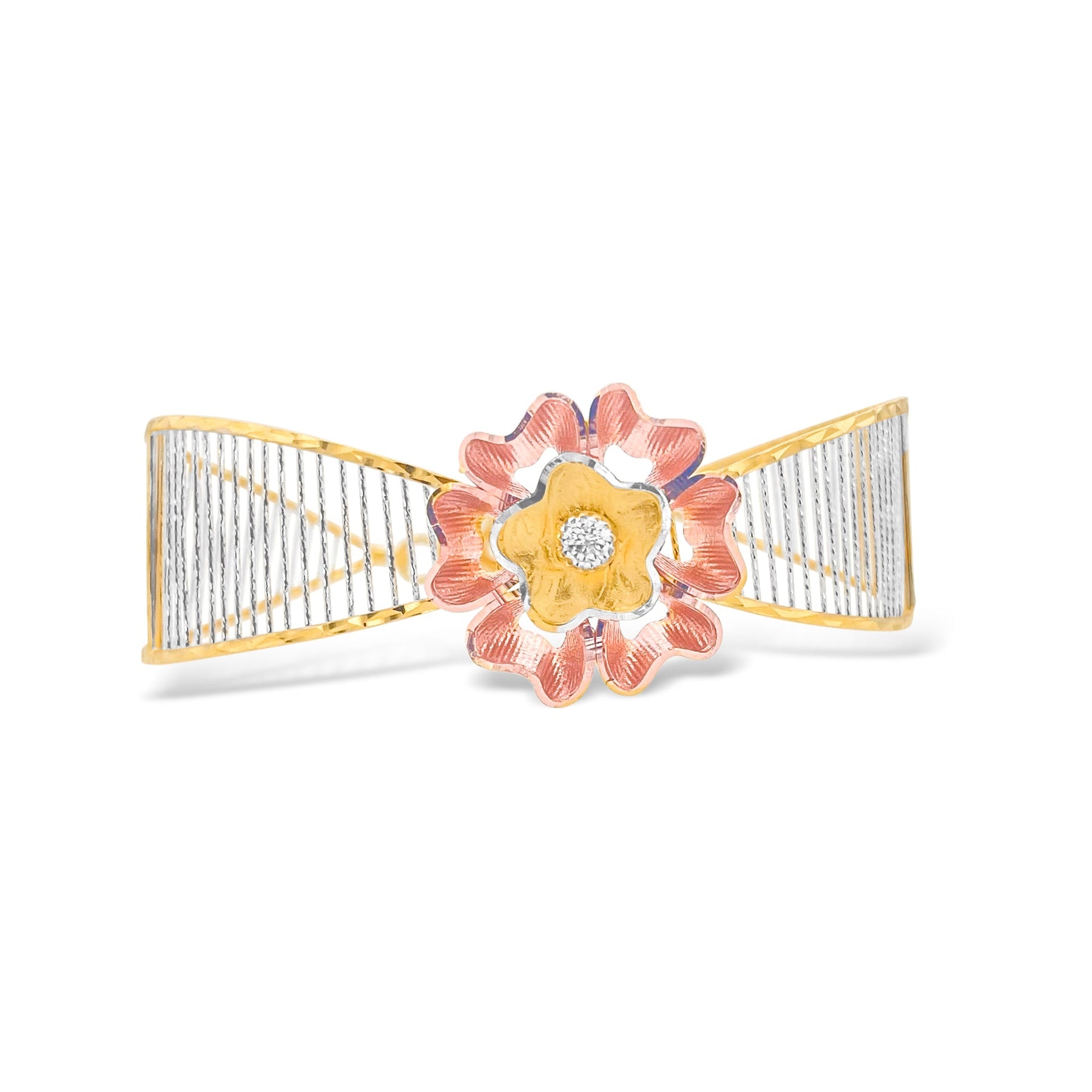 This stunning bracelet is crafted from 22k solid gold and features a harmonious combination of yellow, rose, and white tones. Its versatile design reflects timeless elegance, making it a standout piece in any jewelry collection.