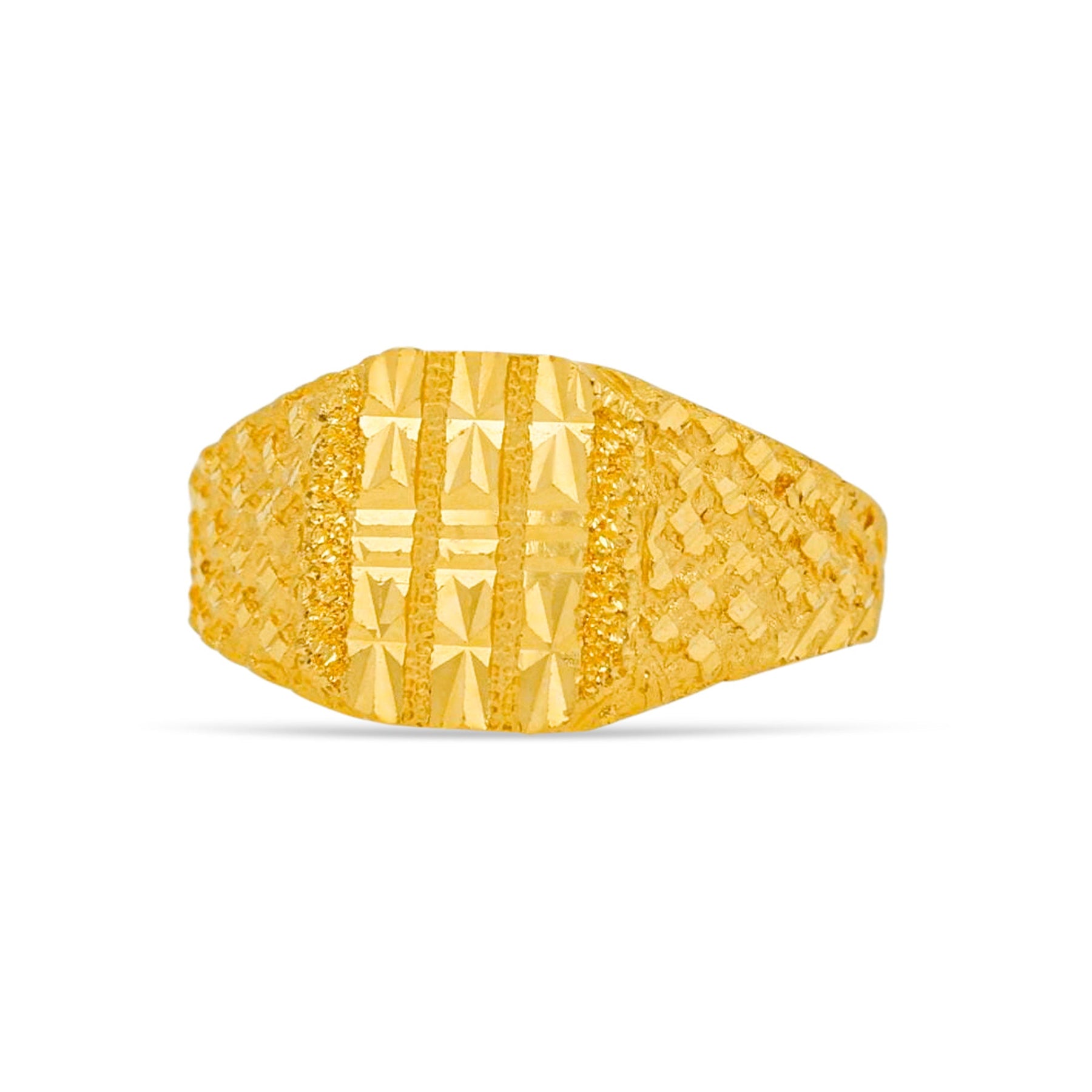 This elegant 22k yellow gold men's ring exudes a classic charm, crafted from high-quality 22k gold. The sleek design is perfect for adding a touch of sophistication to any outfit. It is a timeless piece ideal for everyday wear.