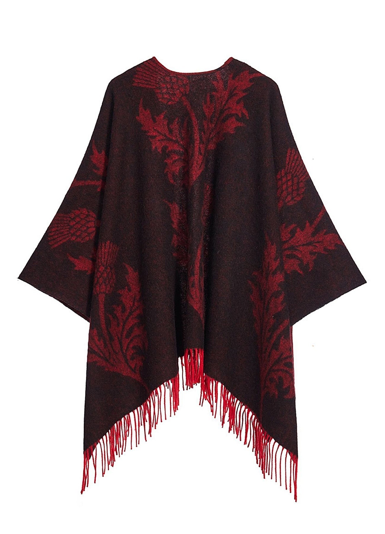 Cape Single Thistle Red Poncho 100% Pure Lambswool