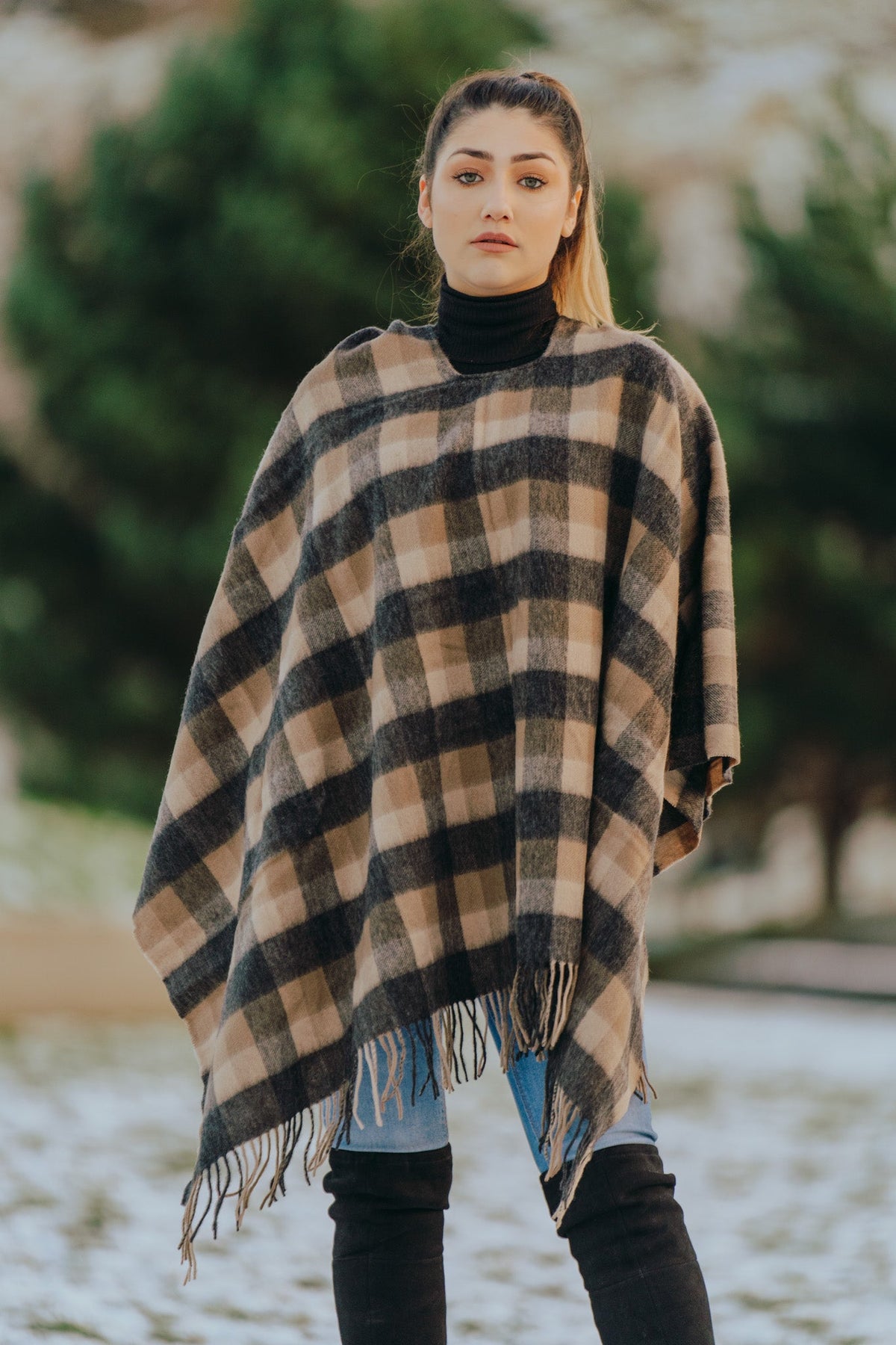• Design: Brown Check Cape