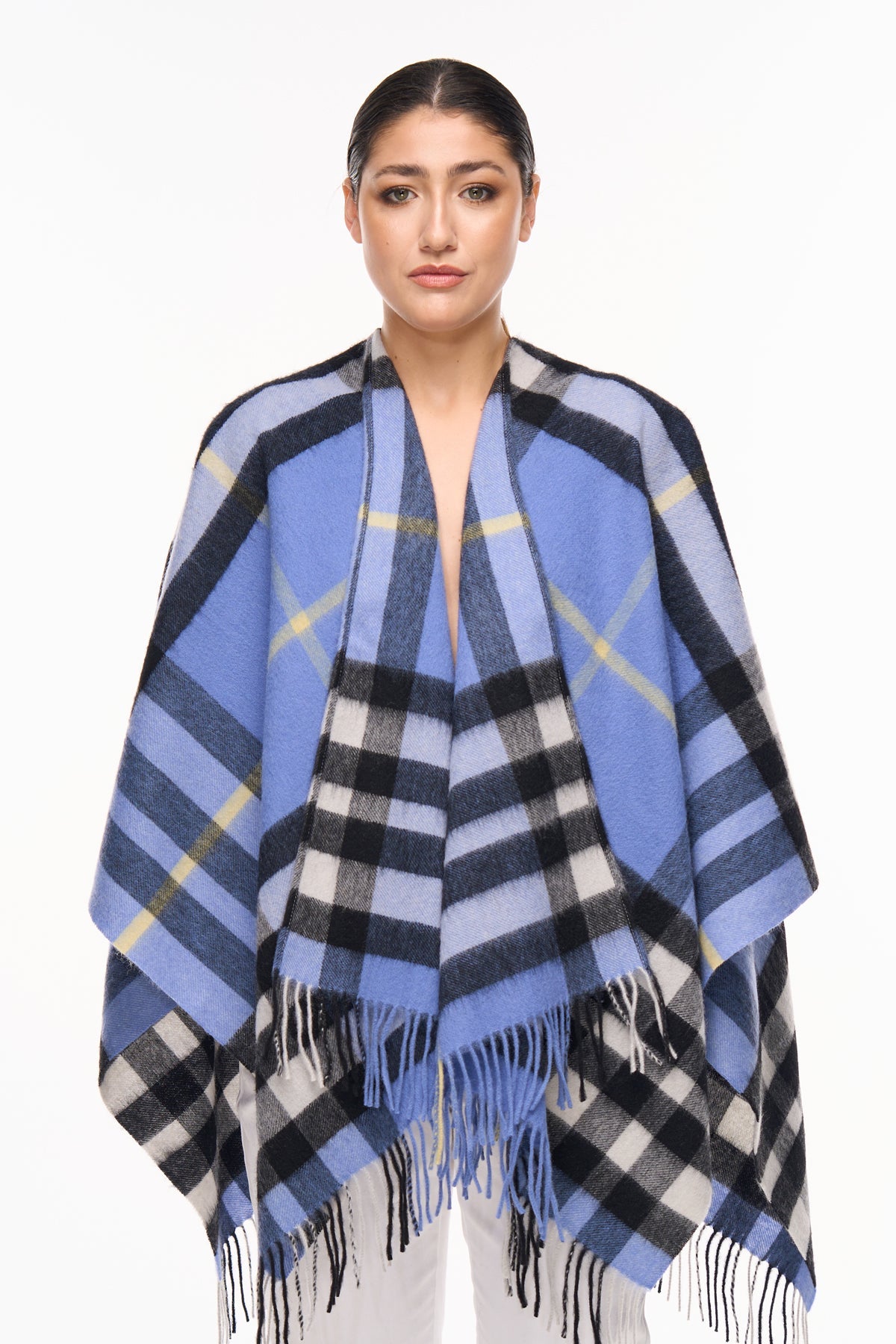 Woman's Designer Cape and Poncho Exclusive Design DC Check. Scott Cashmere is a Scottish heritage brand, a luxurious fashion label that epitomises elegance and sophistication. Our capes/ponchos are crafted using 100% pure extra fine lambswool fibres from sustainable sources, in mills that have been manufacturing for over 250 years producing timeless pieces that offer both comfort and style. Each cape/ponch is meticulously designed to exude unparalleled quality and craftsmanship. Embrace the allure of our luxury capes/ponchos with unique dc check designs and quality that stands the test of time. Elevate your wardrobe with our exquisite capes/ponchos and indulge in the ultimate luxury of Scott Cashmere.