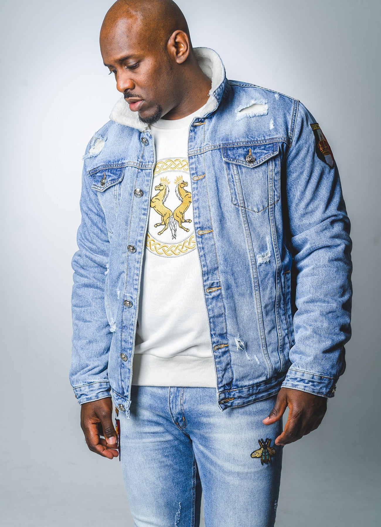 • Style: Denim jacket with embroidered logo
