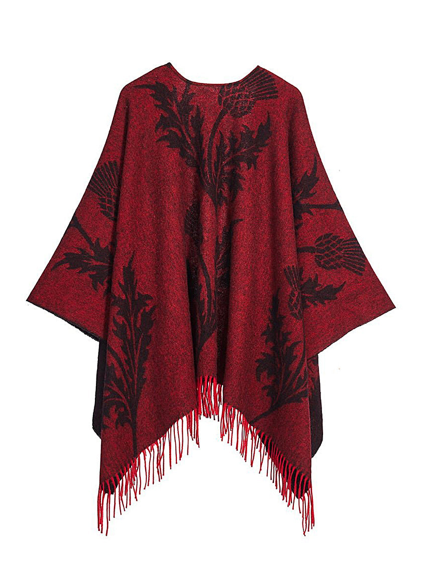 Cape Single Thistle Red Poncho 100% Pure Lambswool