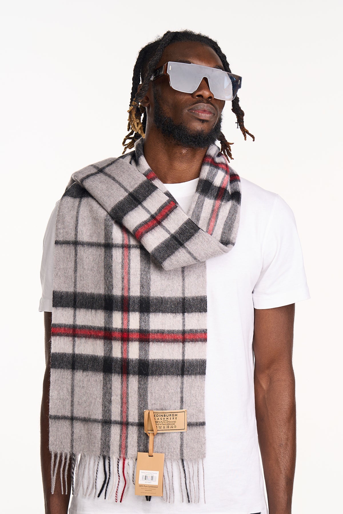 Scarf Tartan 100% Pure Lambswool Scottish Design Thomson Grey
